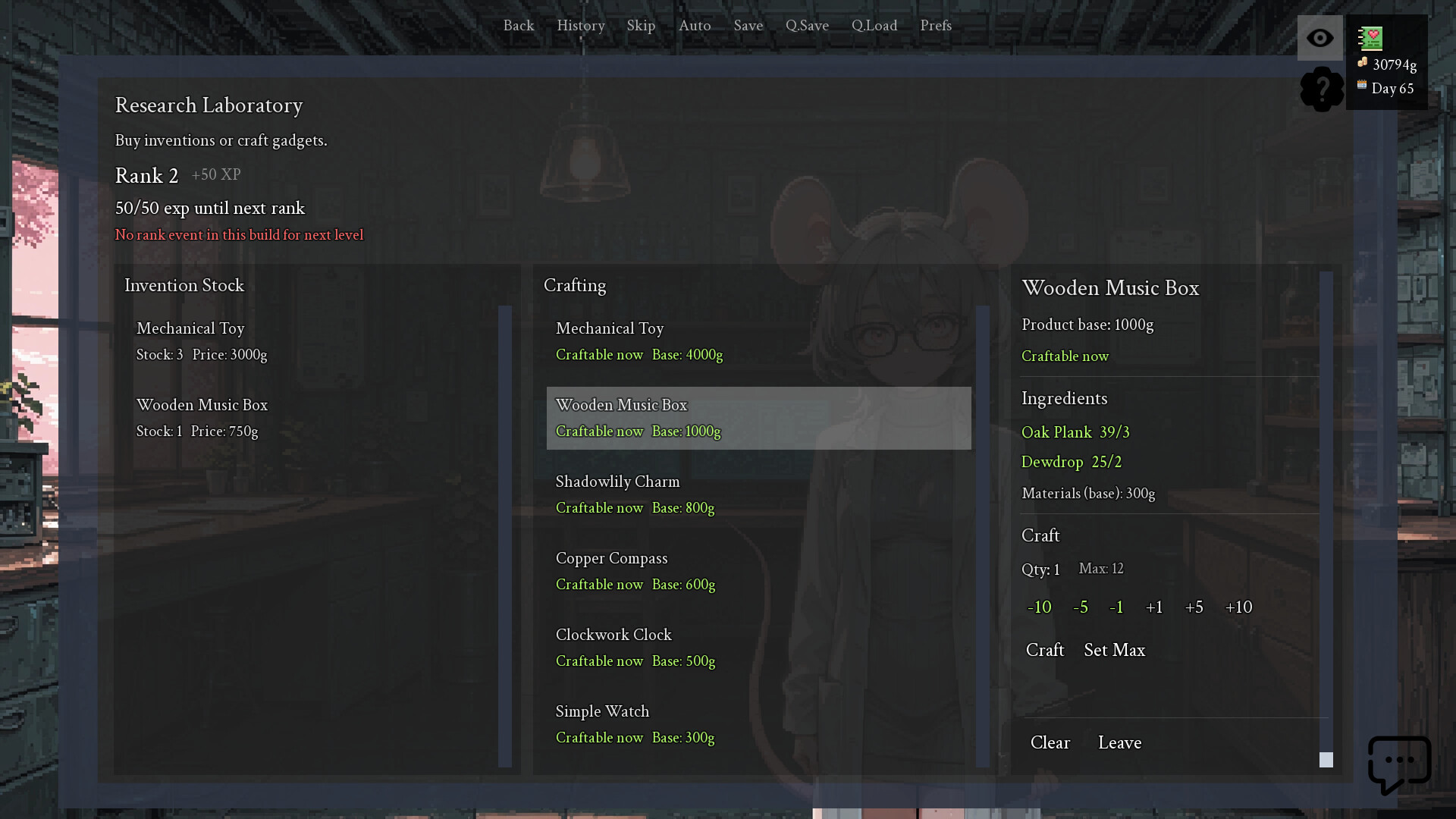 • Before Hours – Set prices, prepare inventory, and see the results of yesterday's scavenges/expeditions.