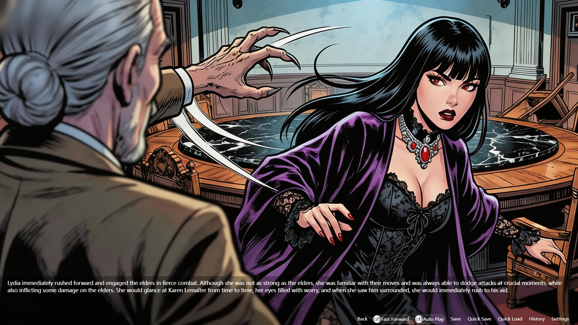 This (visual interactive fiction) game describes the use of supernatural science fiction items, leading to non-consensual behavior, BDSM, and even supernatural dangerous behaviors beyond human limits, and describes organized crime and violence.