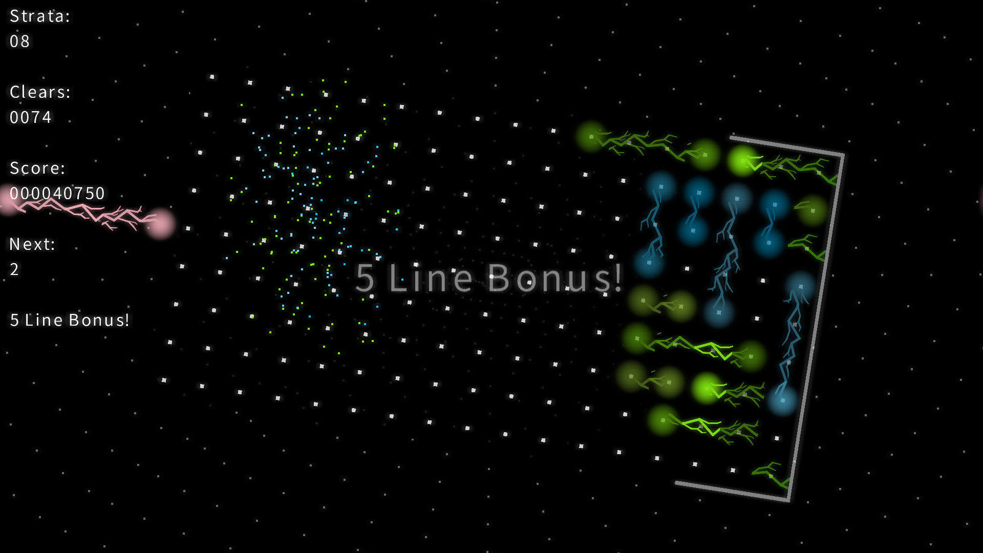 當一行被填滿時,它會消失,其上方的所有閃電都會落下。