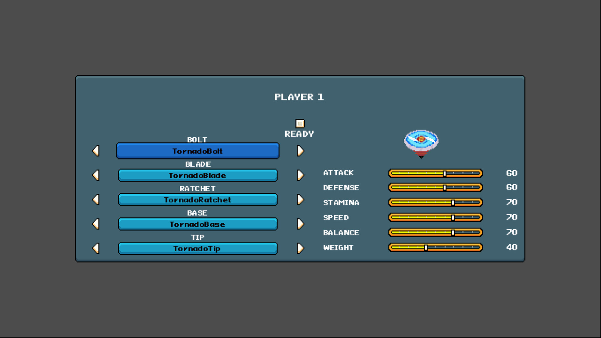 Inspired by the classic spinning top battles, this game throws you into intense duels where strategy and skill are key. Customize your spinner from a wide variety of unique parts, including different attack rings, ratchets, and tips, each with unique stats and abilities that affect your speed, power, and defense.