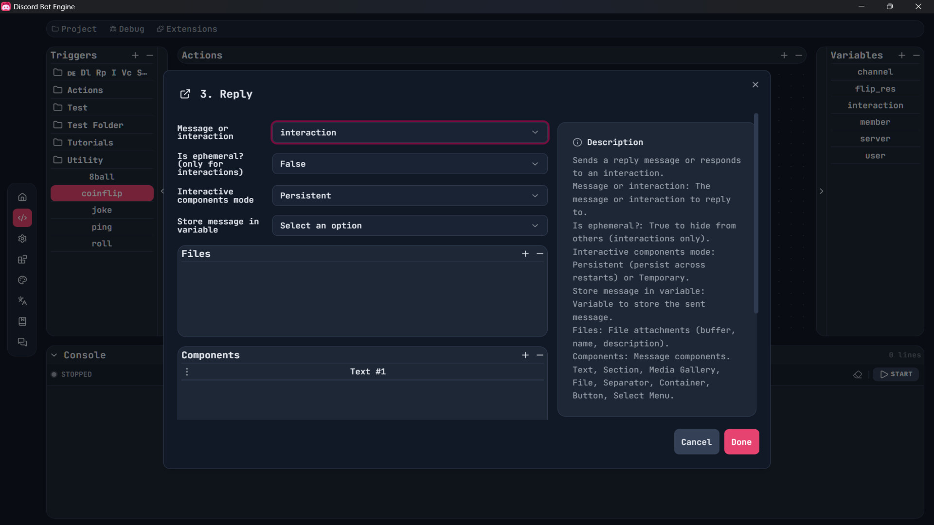 Discord Bot Engine is an app built to make creating Discord bots simple, flexible, and enjoyable. Designed with creators and community builders in mind, it streamlines the process of turning ideas into fully functional bots that enhance engagement and bring personality to any server.