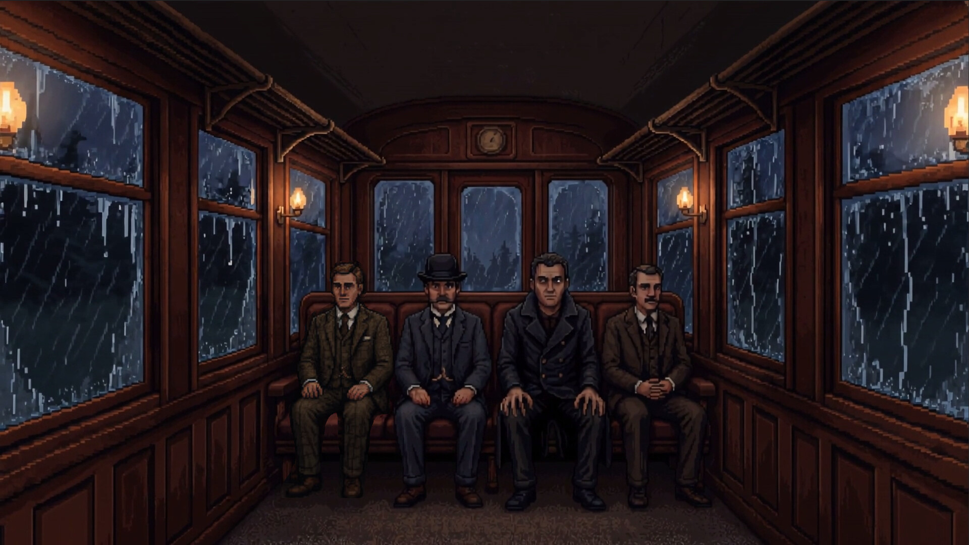 Im Waggon befinden sich vier Passagiere, doch einer von ihnen ist ein Mimic — eine Kreatur, die sich als Mensch tarnt. Du kannst sie durch den runden Rückspiegel in der Kabine oder über eine separate Taste zur Ansicht des Passagierwagens beobachten. Bei Blitzen leuchten seine Augen kurz rot auf — das einzige eindeutige Anzeichen der Gefahr, das leicht zu übersehen ist. Je länger die Fahrt dauert, desto aufmerksamer musst du werden.