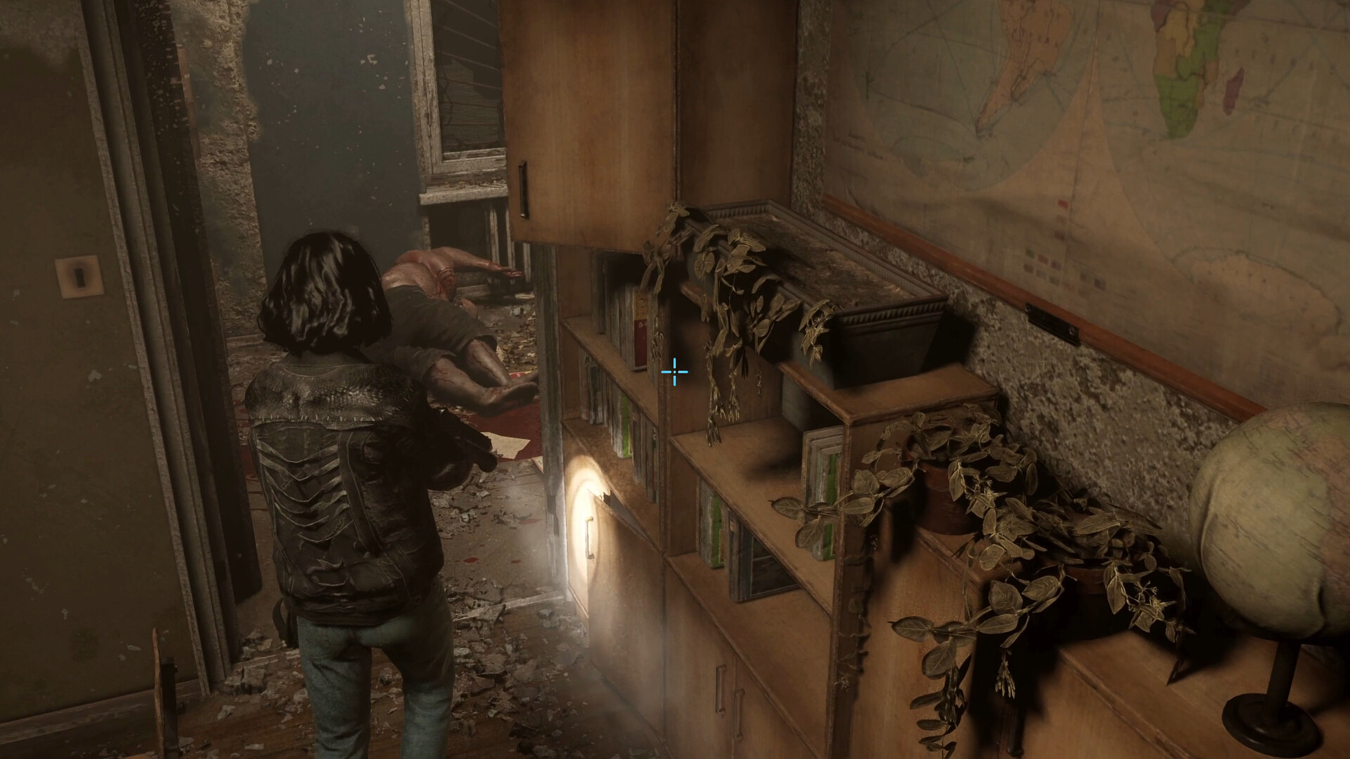 Nutze deine Taschenlampe, um die Umgebung zu erkunden und deinen Weg zu finden, aber denke daran: Licht kann die Aufmerksamkeit der Infizierten auf dich ziehen.