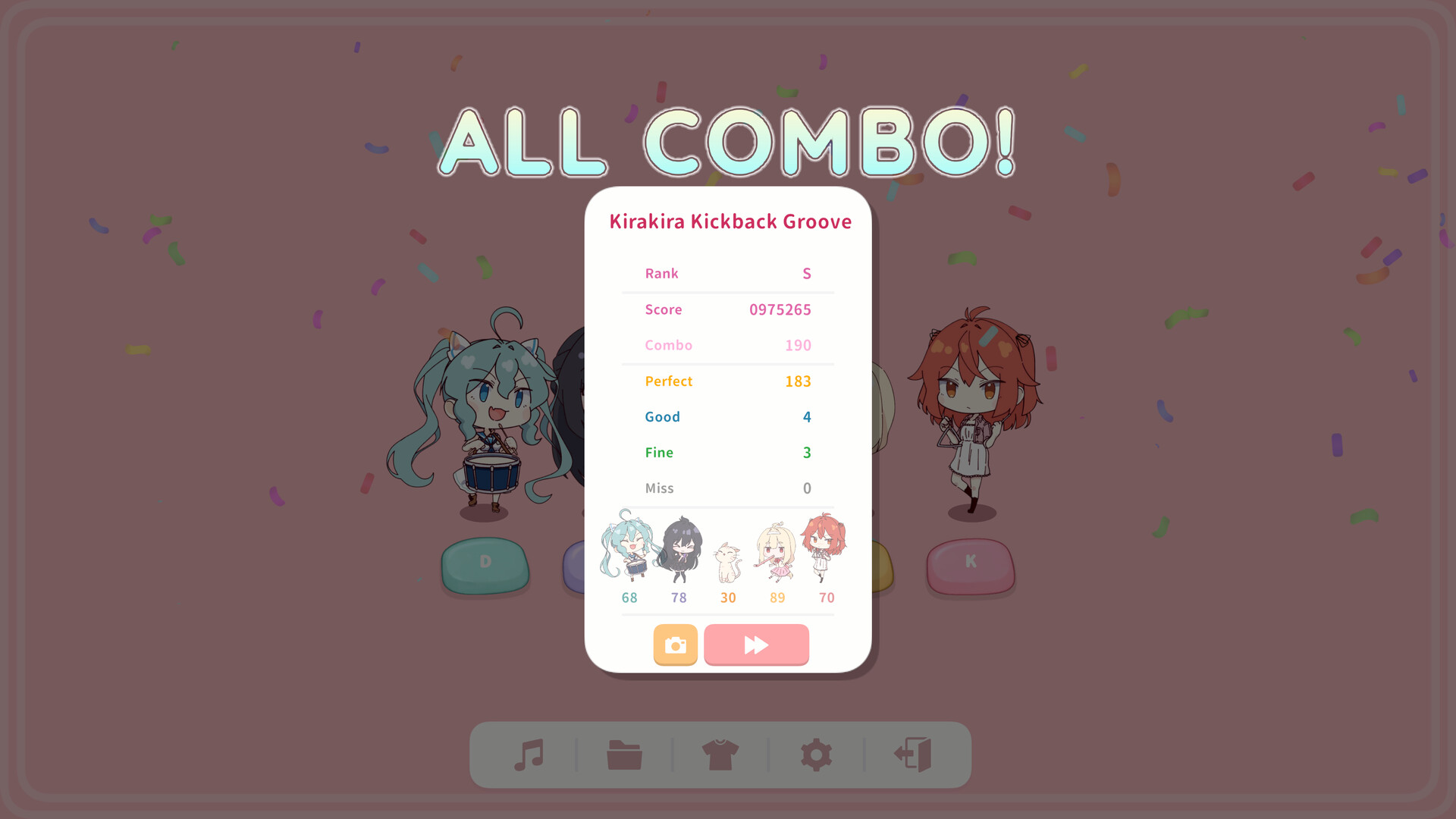 Kokeile Melody Friends -demoa: pelaa 12 mukana tulevaa kappaletta Helppo/Normaali-tasolla tai tuo oma musiikkisi (enintään 1 minuutti per peli). Steam-ominaisuudet eivät ole käytössä demossa.