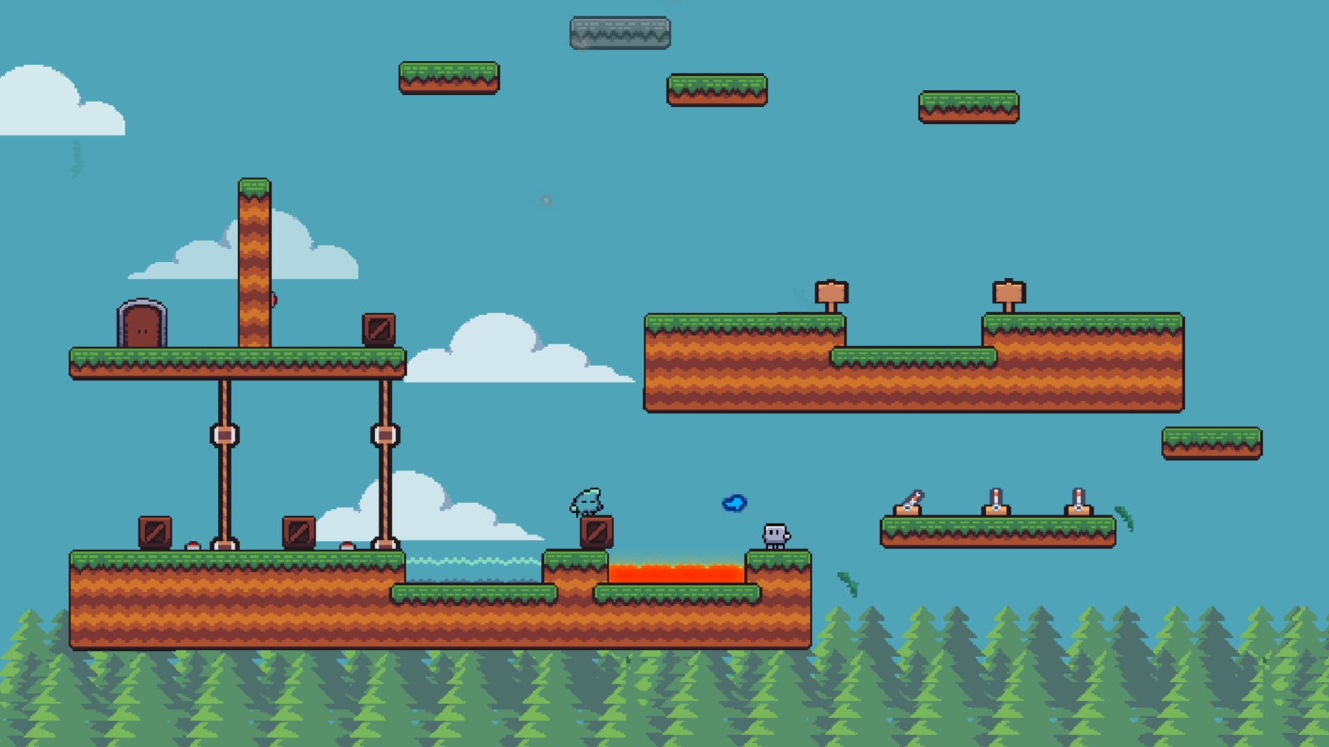 Control a destroying stone, capable of breaking obstacles and opening paths, and a water creature, which fires water bullets to activate mechanisms, erase threats, and interact with the environment. Each challenge was designed to require communication, strategy and teamwork.