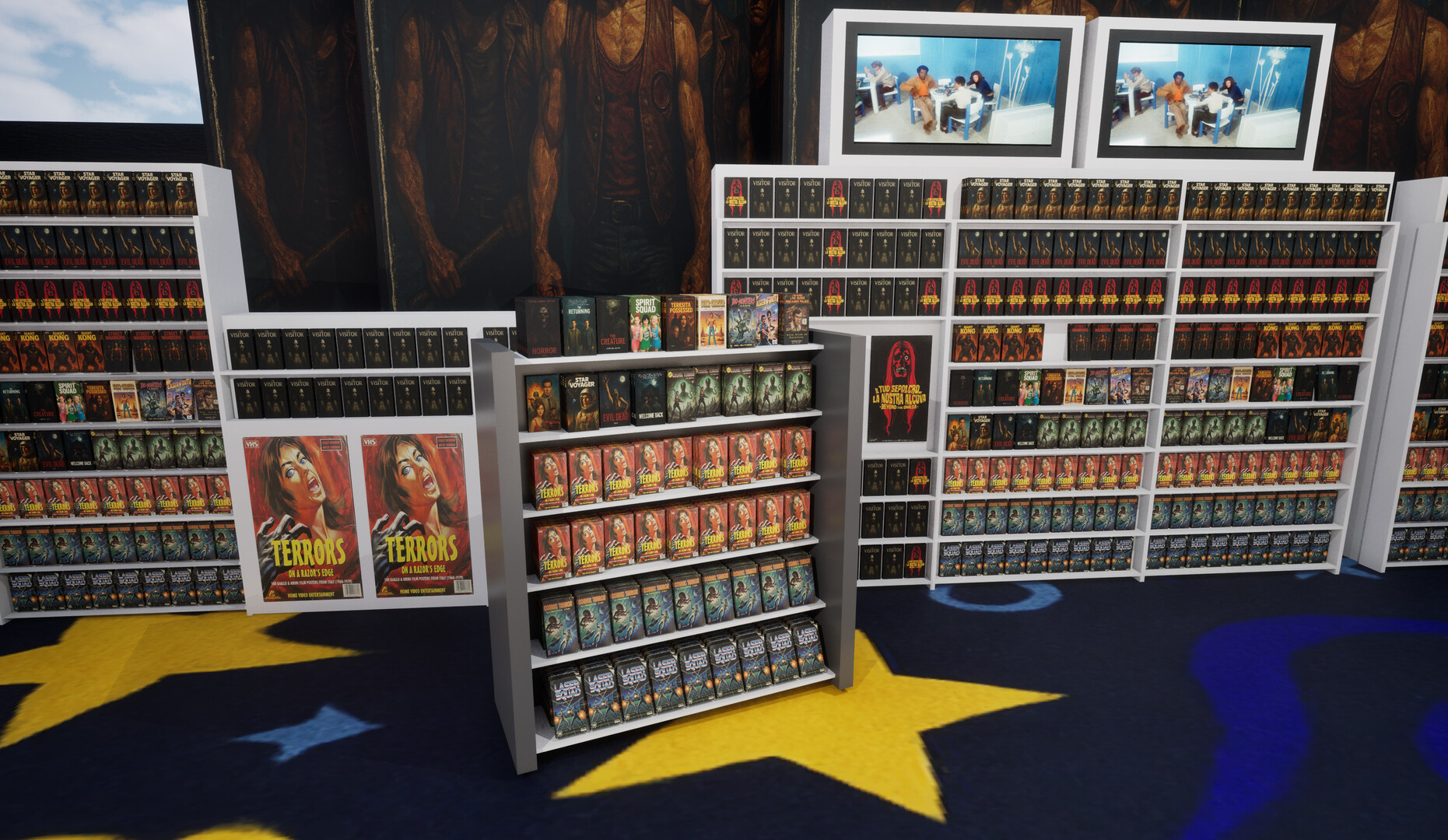Explore a detailed 3D environment designed to capture the feeling of being inside a real video store.