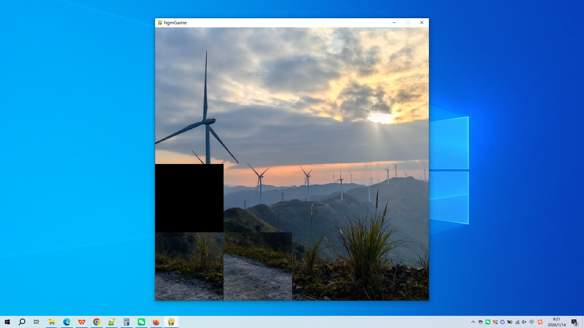 Game steps: Click the left mouse button on the image around the black square, and the image and black square will switch positions. The goal is to assemble all the small images into a complete image. The complete image is as follows: