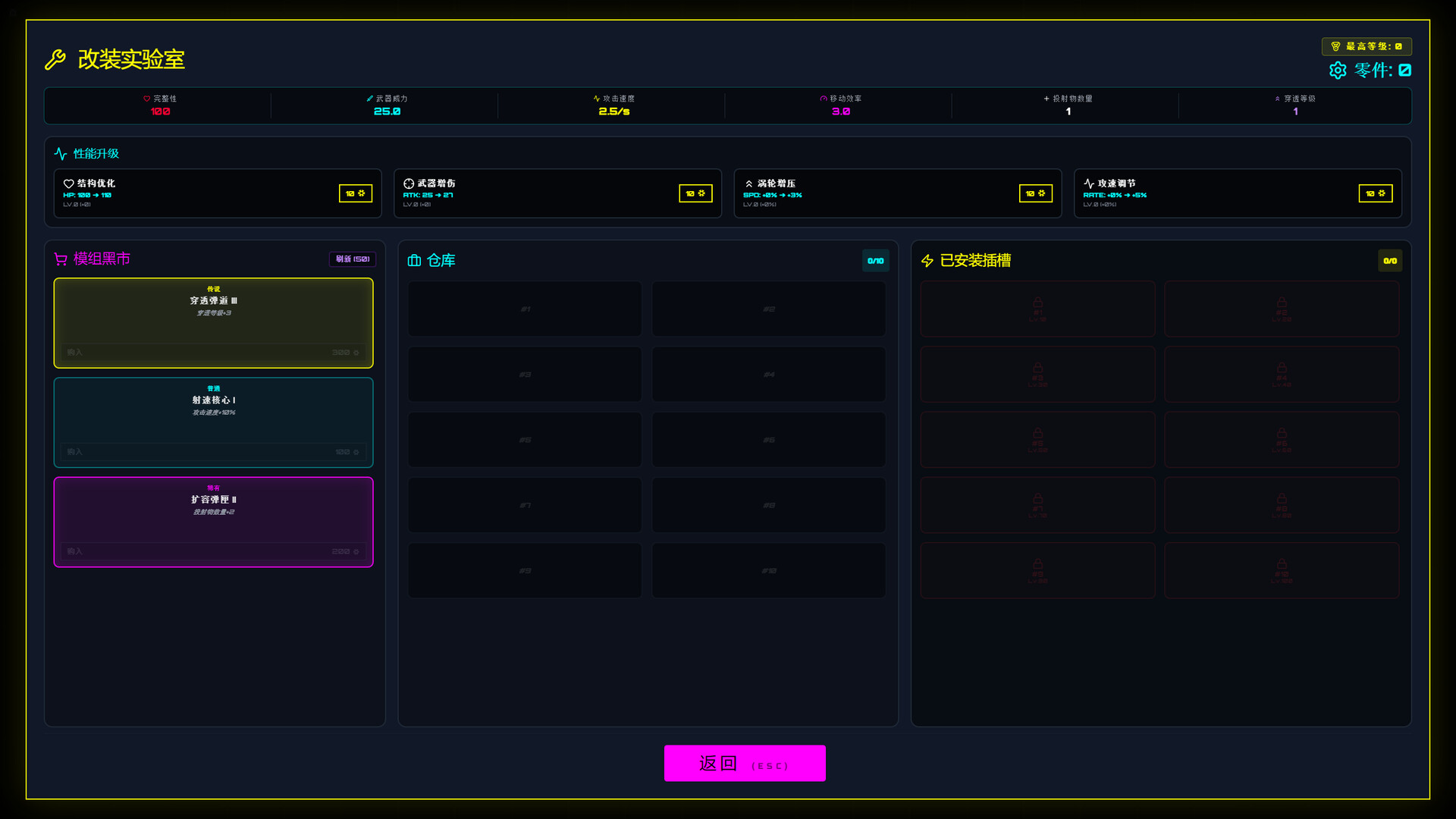 告别单一的升级路径。在改装实验室中,你可以通过收集的零件永久强化“结构优化”、“武器增伤”、“涡轮增压”和“攻速调节”。解锁并装备多达10个核心模组插槽,搭配购买的模组,打造属于你的终极杀戮机器。