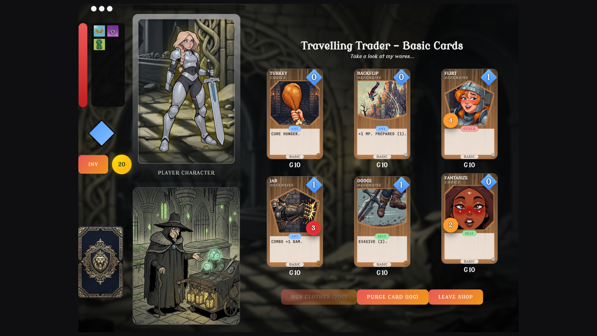 • Manage HP, arousal, energy, card draw, and long-term corruption