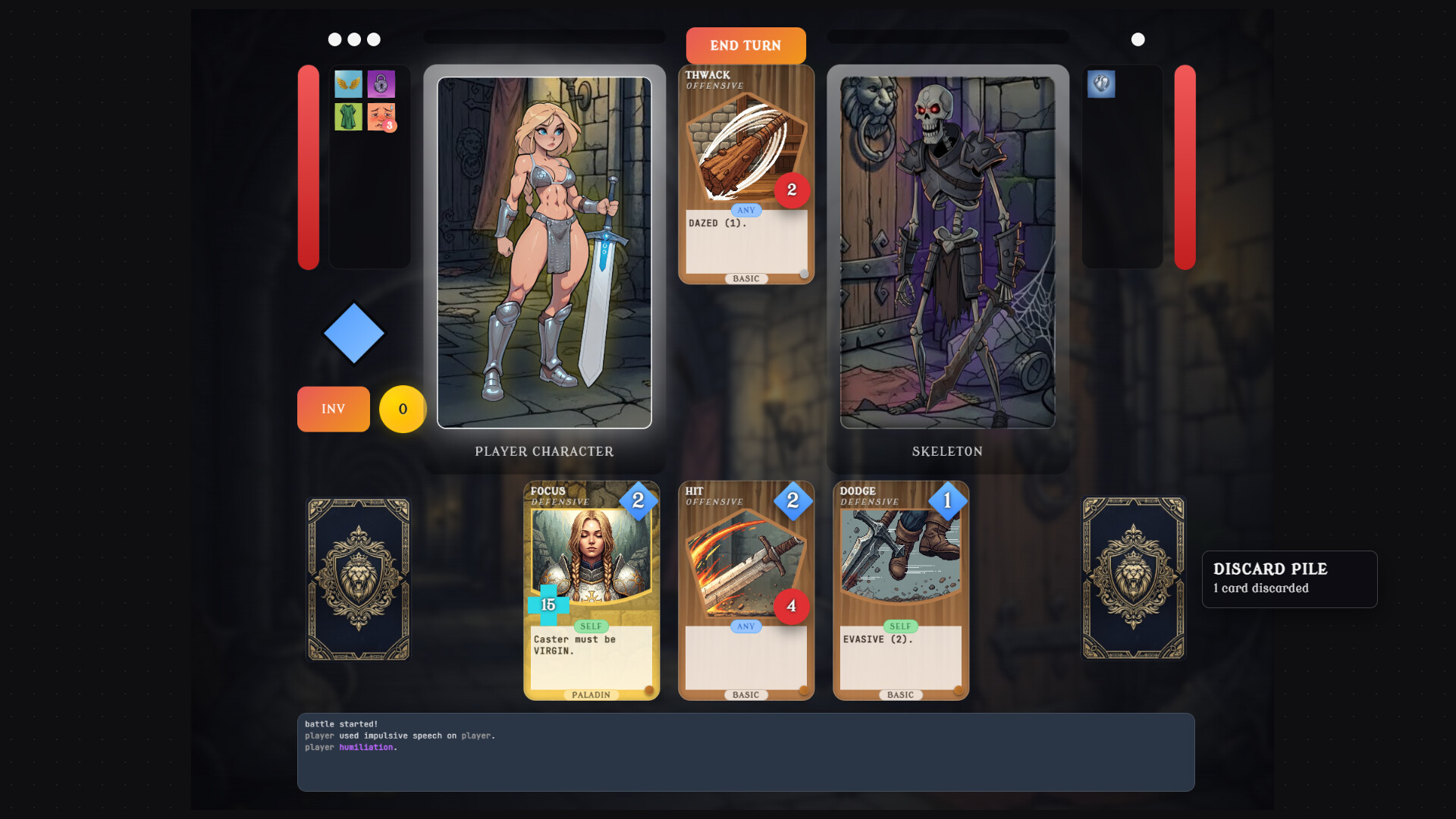 • Manage HP, arousal, energy, card draw, and long-term corruption