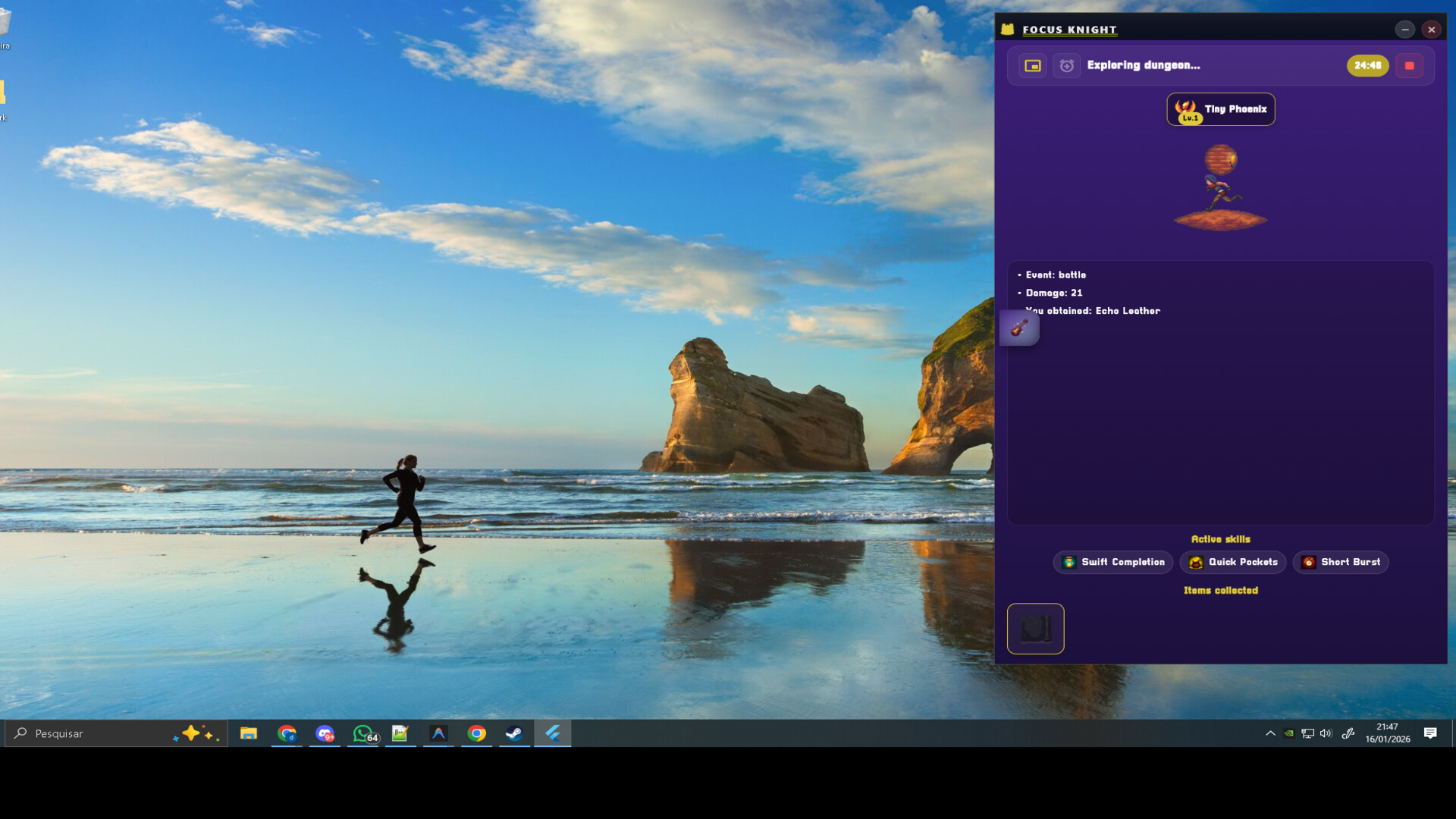 During focus sessions, your character explores dungeons, defeats enemies, faces bosses, and discovers treasures. The longer you stay focused, the greater the rewards.