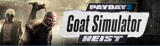 The Goat Simulator DLC is the 30th pack for PAYDAY 2, and is a collaboration between Coffee Stain Studios and OVERKILL. Vlad has a new mission for the gang, but things quickly get more... complicated once they arrive at the scene. With this update we introduce a brand new two-day heist that is unlike anything we've done before. Together with this comes a new shotgun, four melee weapons, four masks, four patterns, four materials and finally two new tracks from Simon Viklund.