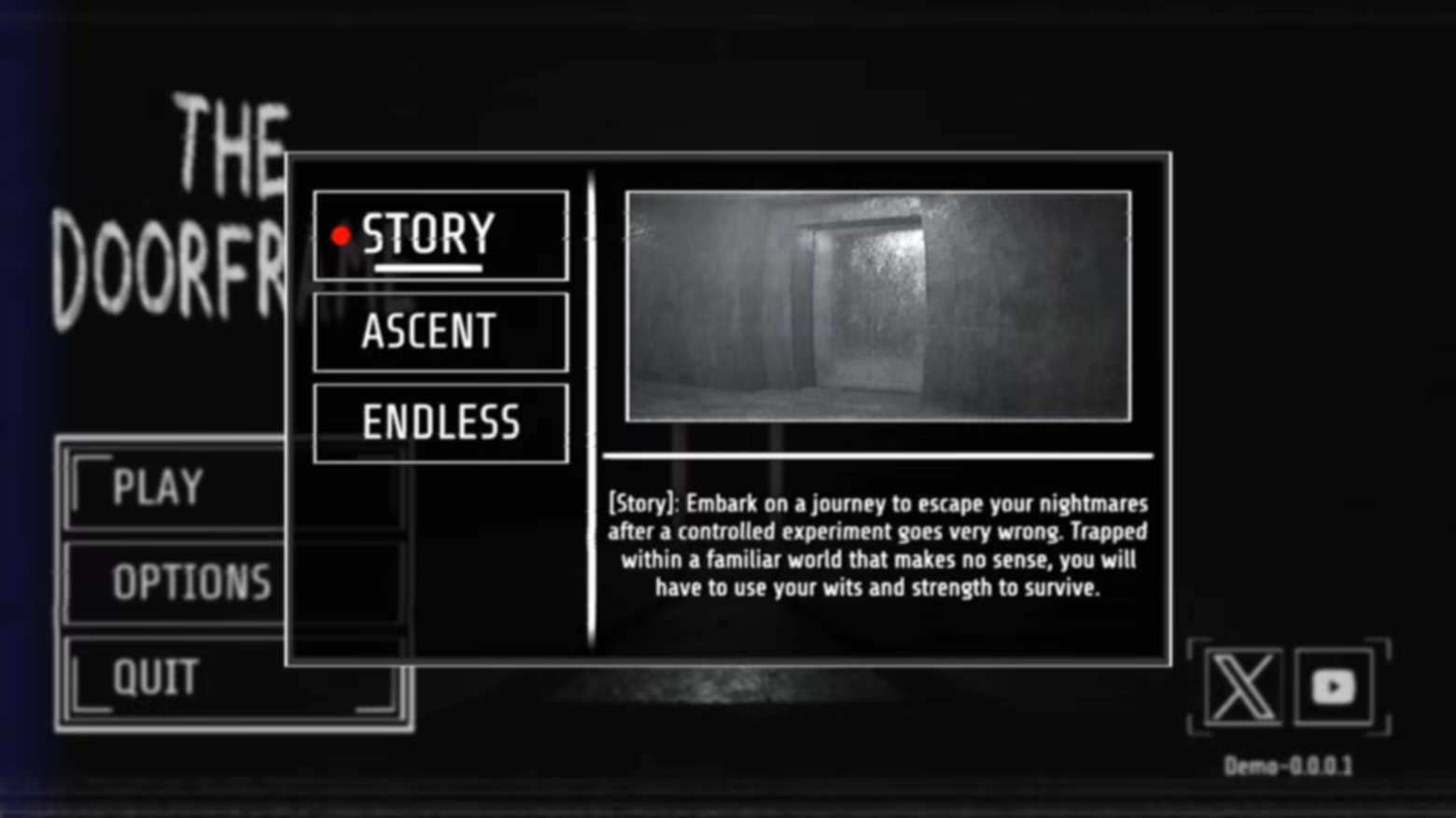 Many things in this world can only be described as unnatural, anomalous occurrences that haunt those in the vicinity... however, sometimes those entities might have demonic origins. You are a retiring employee of a secret medicinal shell company that was promised a big payday after one last job: Enter The Doorframe, record the manufactured dreamscapes within, then leave. Seems simple enough right? After all, nobody truly knows how this mysterious and supernatural doorframe came about, but everything seems to be under control. The company has never steered you wrong before, and every other job has been relatively safe, so it's practically harmless...