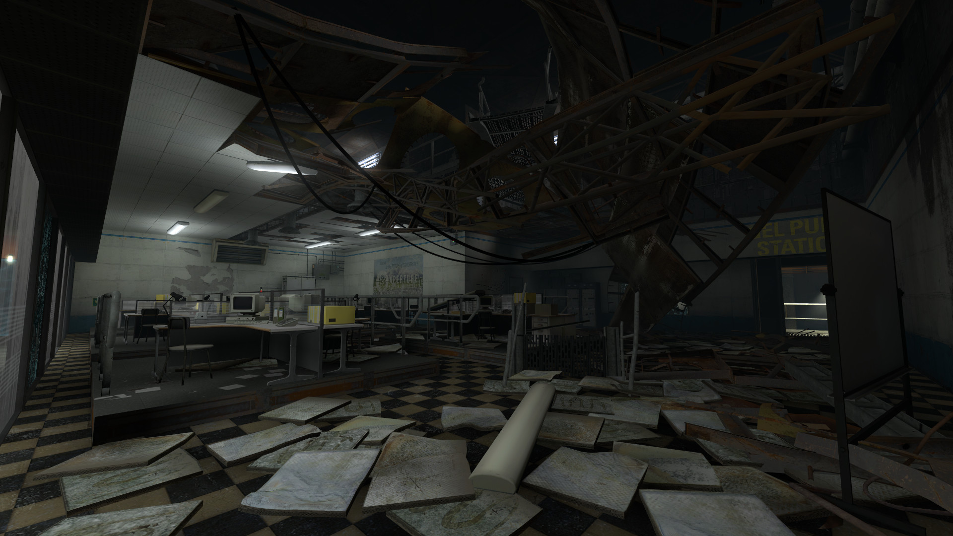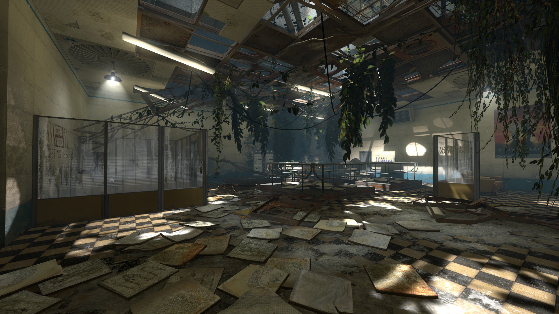 Aperture Science Experimental Facility #7 is empty. Following the failure of the central core, the complex has been consumed by overgrowth and decay.