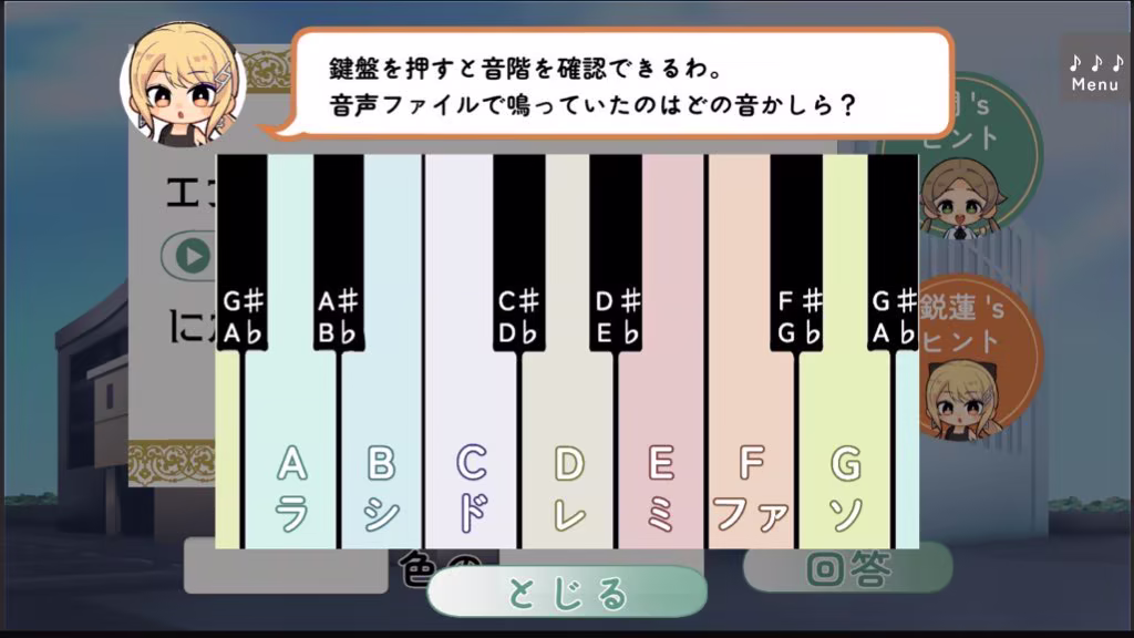 This game features numerous "ear-solving" gimmicks, including audio, sheet music, and instrument performances.