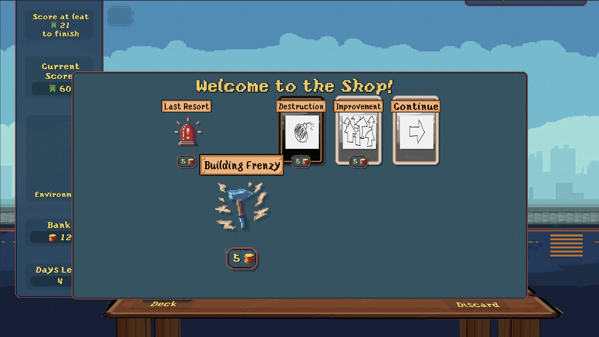 Starchitect puts the builder back into deckbuilders. Draft cards, upgrade your workers, and discover wild synergies to push your rating to the limit. Break the game or somehow fit your dream house onto a 6-block-wide construction site.