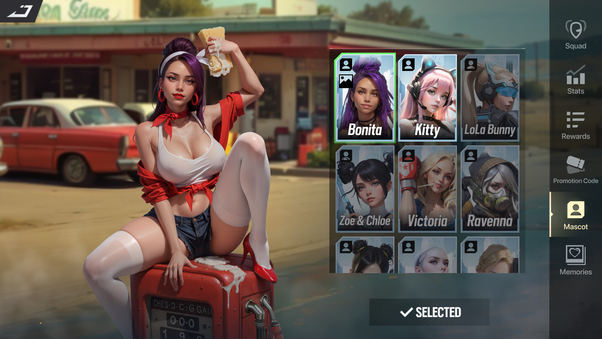 By purchasing this DLC, you will get Bonita in her Gas‑Station Doll outfit. You can change your mascot at any time by opening your in-game profile and selecting the "Mascot" tab.