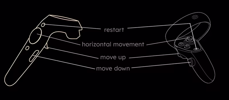 Using motion controllers, you navigate through invisible sound paths. Follow your ears. Invisible sound tunnels are placed throughout the environment to guide you through the experience.
