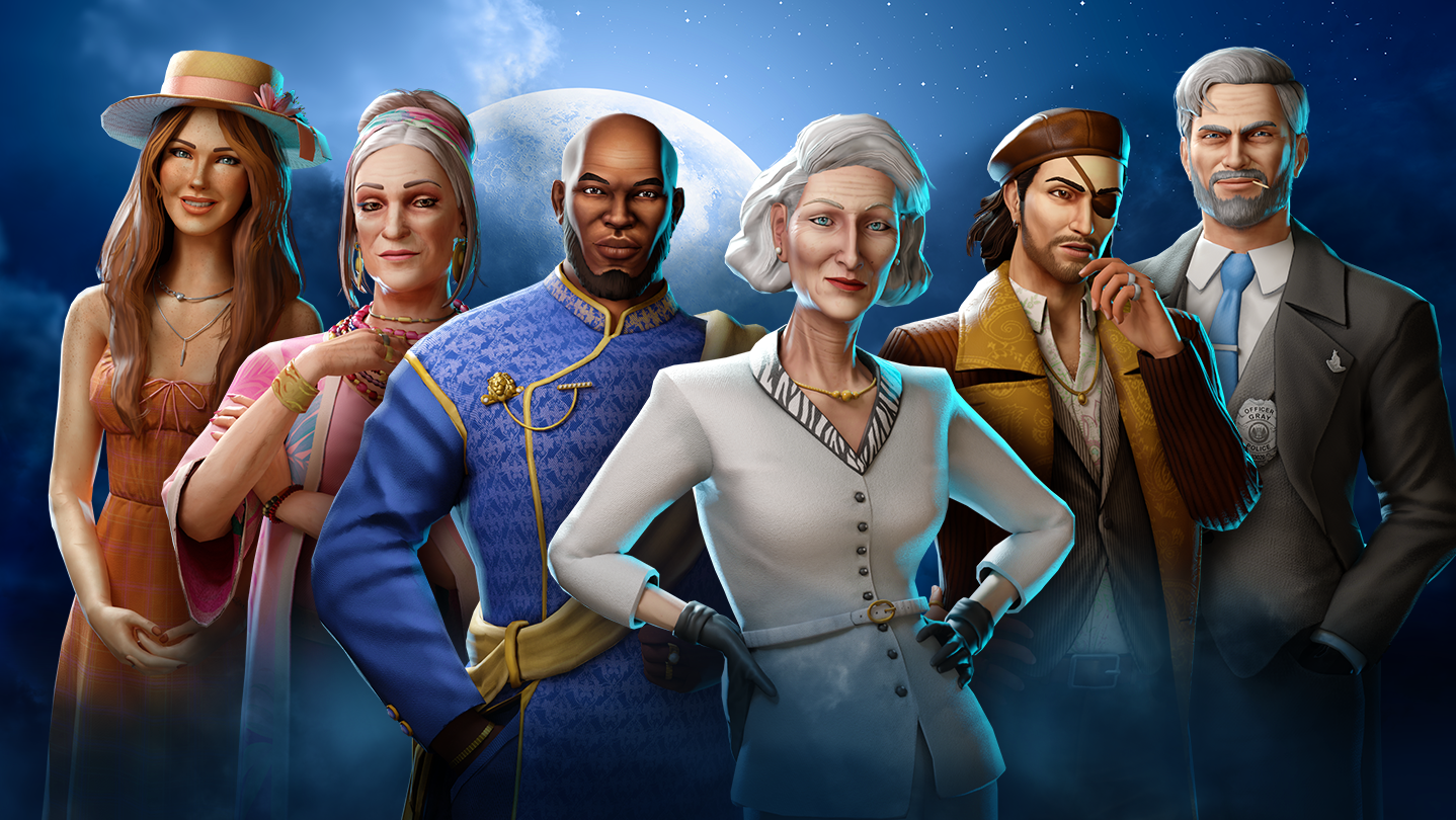 Prince Azure, Monsieur Brunette, Mrs White, Madame Rose, Miss Peach and Inspector Gray join the modern Cluedo digital game!
