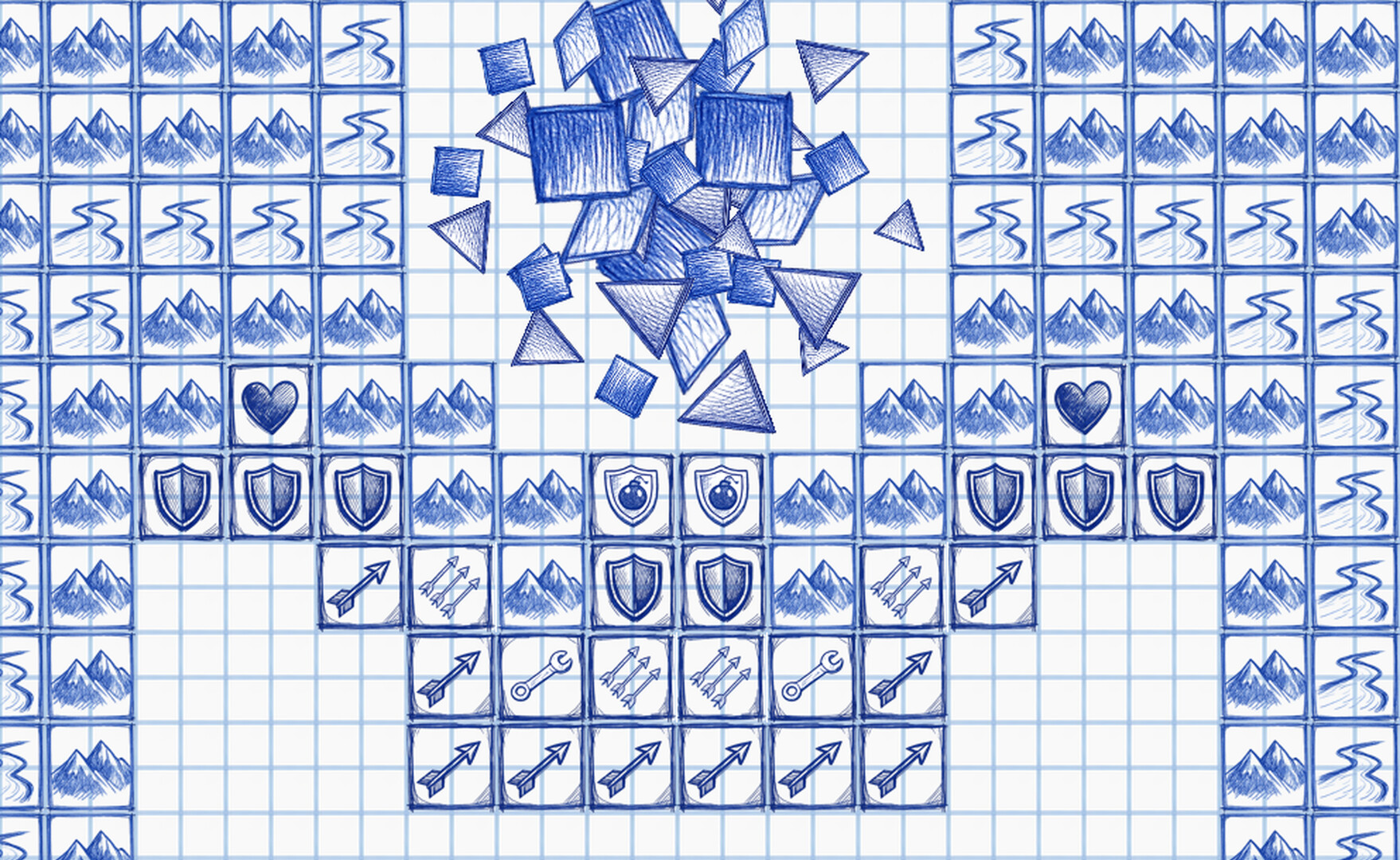 A kockás papírlapon erőforrásokat kell gyűjtenie, vonalakat kell húznia és védelmet kell építenie, hogy visszatartsa a végtelen ellenséges hordákat. A lap fokozatosan megtelik. Kevesebb hely marad. A nyomás egyre erősebb. Minden vonás számít. Minden döntés a papíron marad.