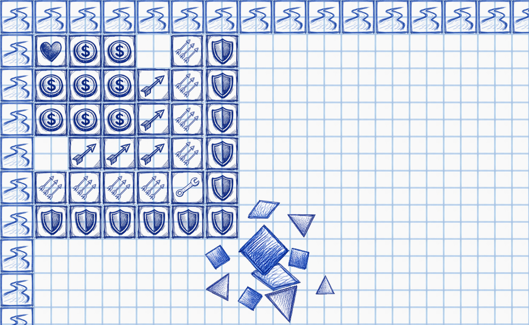 Trên tờ giấy kẻ ô, bạn phải thu thập tài nguyên, vẽ đường và xây dựng phòng thủ để ngăn chặn đám đông kẻ thù vô tận. Tờ giấy dần dần được lấp đầy. Không gian ngày càng thu hẹp. Áp lực ngày càng mạnh. Mỗi nét vẽ đều có ý nghĩa. Mỗi quyết định đều được ghi lại trên giấy.