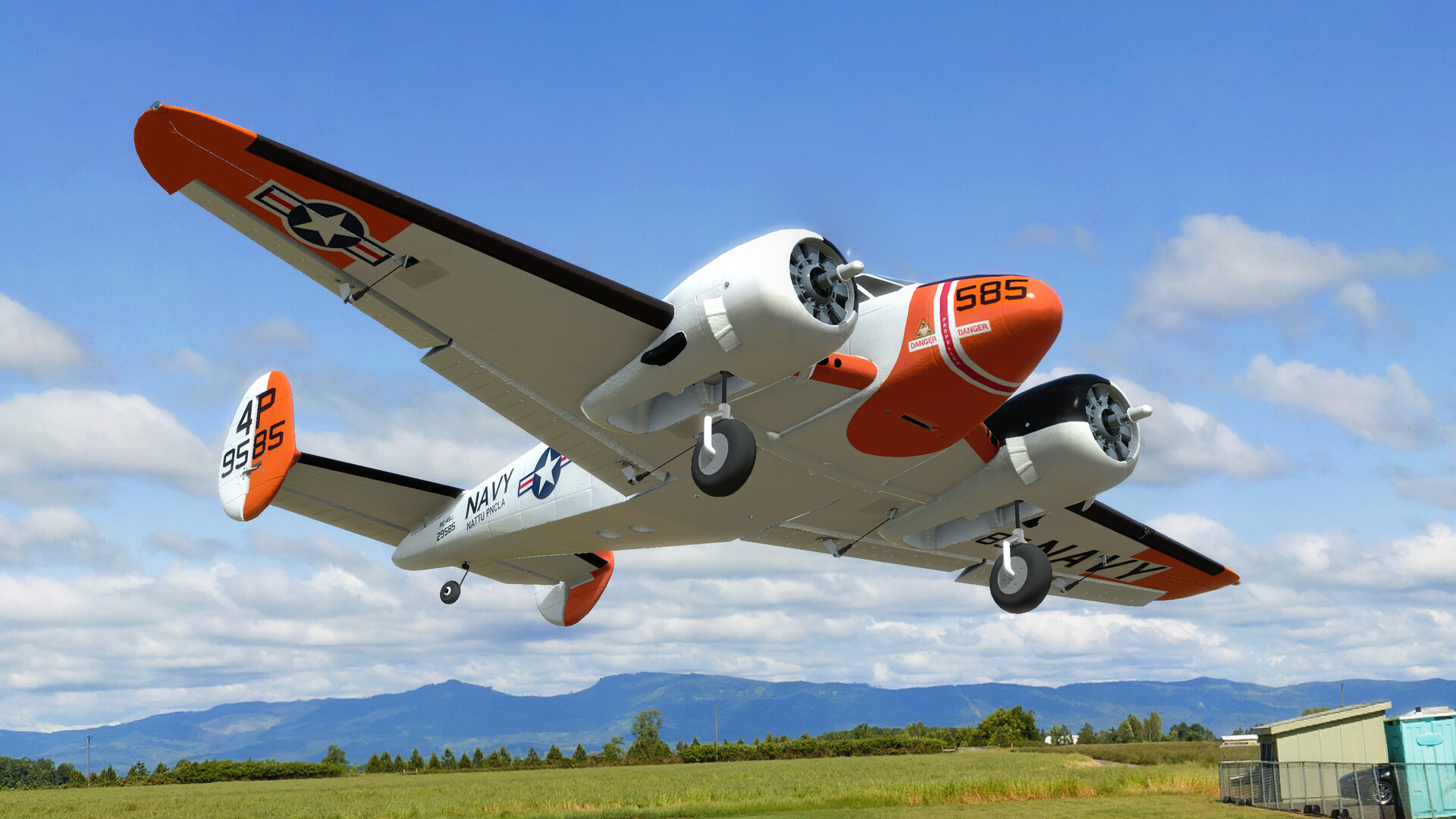 The design of the “Twin Beech” D18 proved so adaptable that Beechcraft Aircraft Corporation eventually produced 32 versions - and more than 9,000 total aircraft - from 1937 to 1969. They served in a wide variety of roles, from passenger transport to mail carrier, and even as a military trainer for navigators and bombardiers. The original E-flite Beechcraft D18 1.5m quickly became known as the most convenient, well-equipped, and easiest-to-fly scale model of the unique aviation icon. Now it's available again with a military trim scheme based on a US Navy variant that first entered service as a navigation trainer, then underwent an overhaul and was reconfigured as a photo reconnaissance trainer in the 1950s. It's outfitted with numerous scale details, as well as functional features such as LED navigation lights, retractable landing gear, and flaps, which further enhance its realism. The 3S and 4S compatible power system features an exclusive Spektrum Avian Dual Smart Lite ESC. The BNF Basic version is also equipped with an AR631+ receiver, delivering real-time telemetry data along with AS3X+ and SAFE Select technologies. The Beechcraft D18/RC-45J 1.5m turns the aviation classic into a modern-day RC marvel that's practical for a wide range of pilots to enjoy!