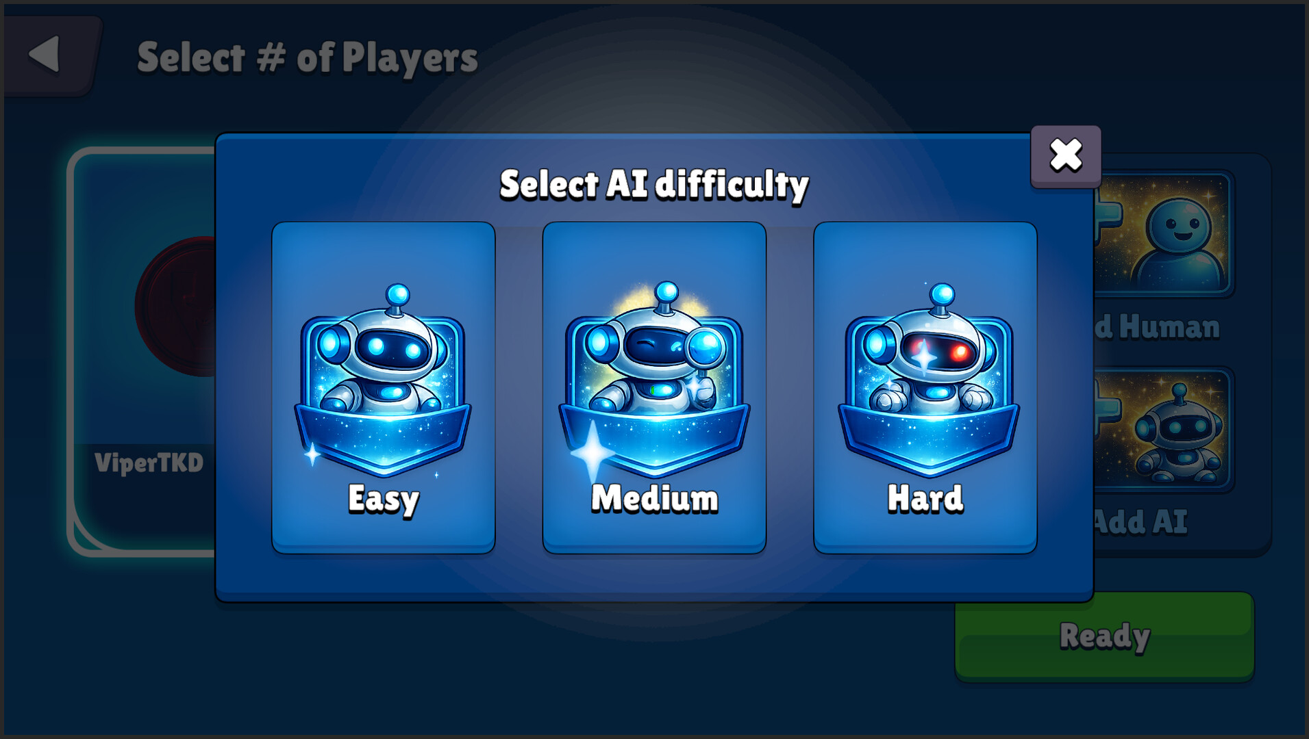 • Bots with 3 difficulties: Practice against Easy / Medium / Hard AI—good luck blaming lag.