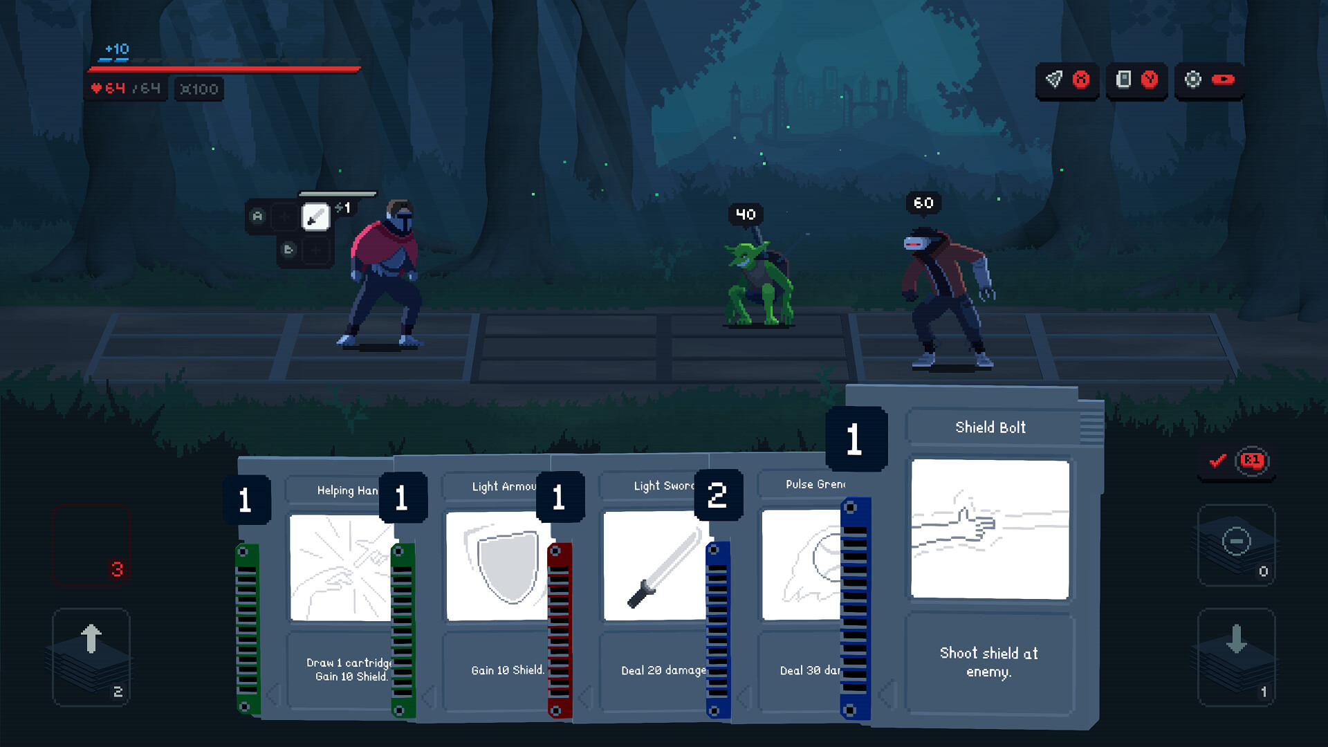 Combat in Cyberknight: Awakening blends fast-paced action with tactical decision-making. Select cartridges from your hand to shape your abilities, then navigate the grid in real time—dodging enemy attacks while waiting for your moment to strike.