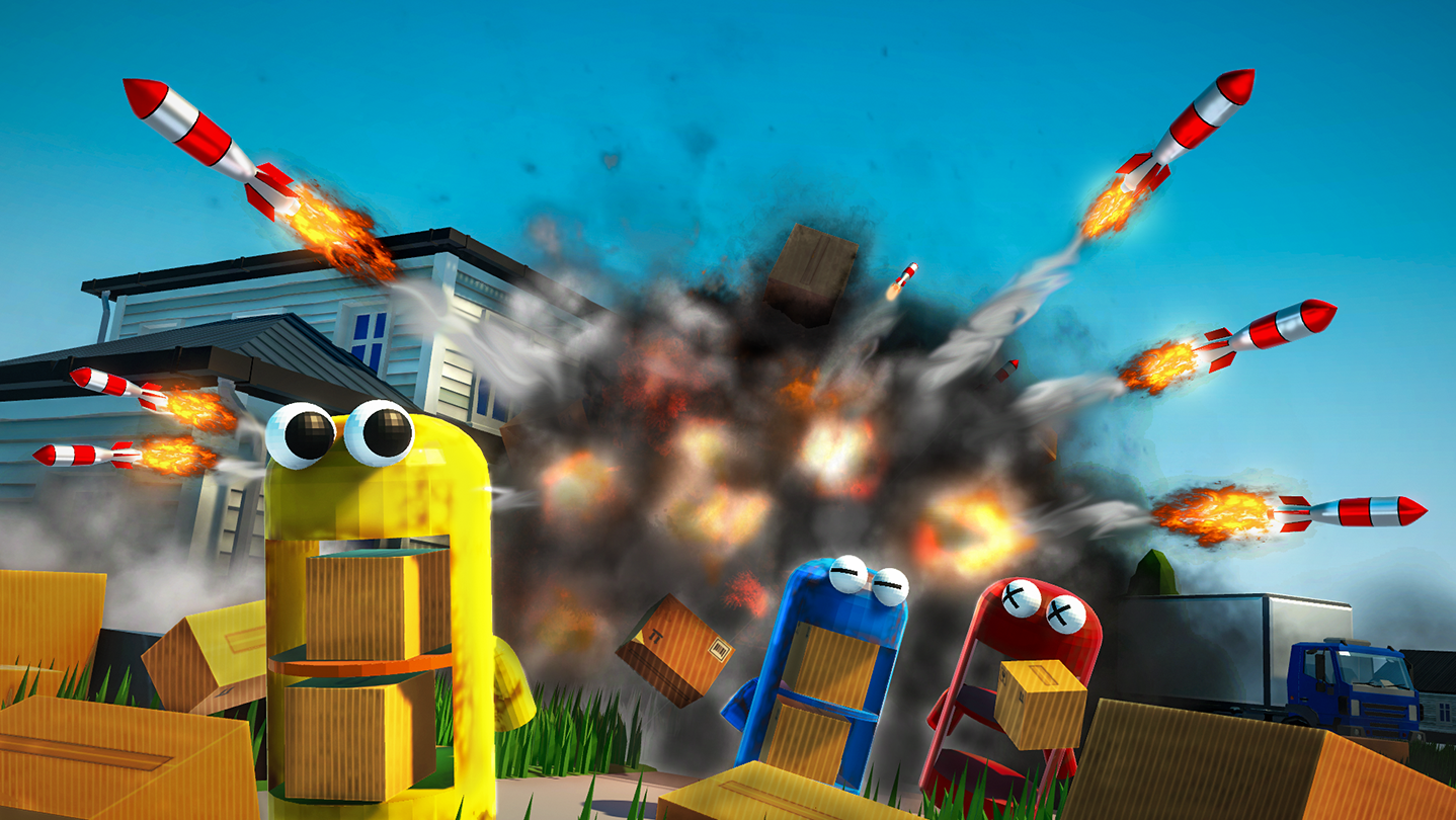 "Livrer ou Détruire ? Le choix vous appartient !" Action jet à grande vitesse et braquage dans cette coop jusqu'à 4 joueurs. Pilotez des robots rouillés, maîtrisez l'inertie et esquivez les missiles pour voler des paquets. Atteindrez-vous le quota à temps ?