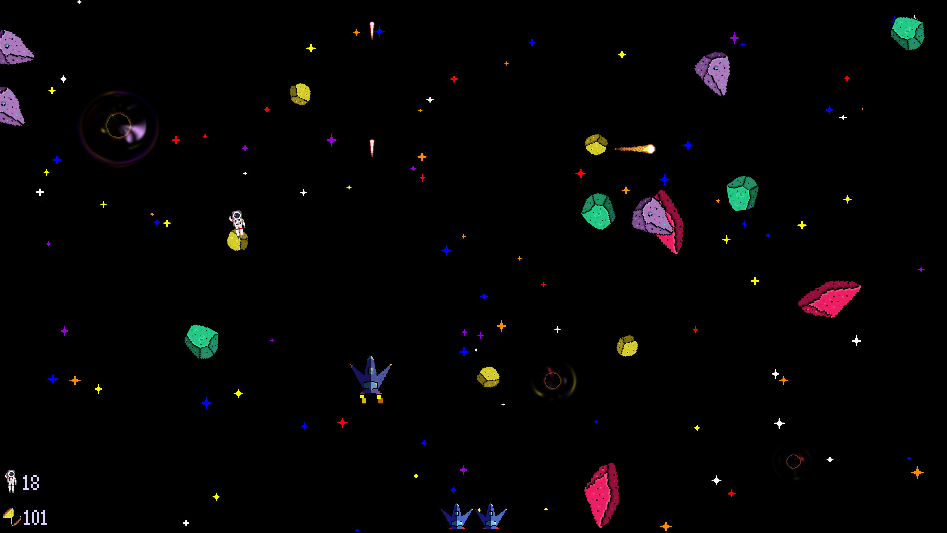 Take control of your spaceship and rescue stranded astronauts while dodging deadly asteroids. meteors and comets. Beware of black holes and remember to save to be safe. Good luck on your Space Journey!