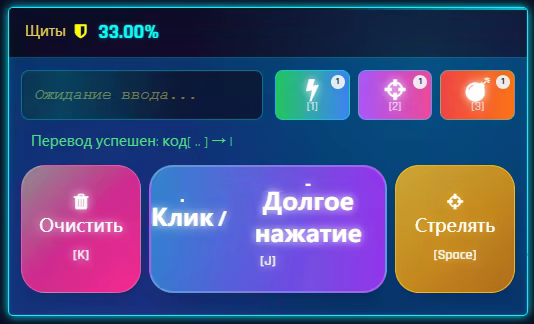 На панели управления, нажав на самую большую кнопку «Нажать» (или клавишу J), вы можете ввести код Морзе «.»; удерживая кнопку «Нажать», вы можете ввести код Морзе «-». Все буквы и цифры состоят из «.» и «-». Как только вы введете правильную комбинацию, вы сможете заблокировать вражескую цель и атаковать.