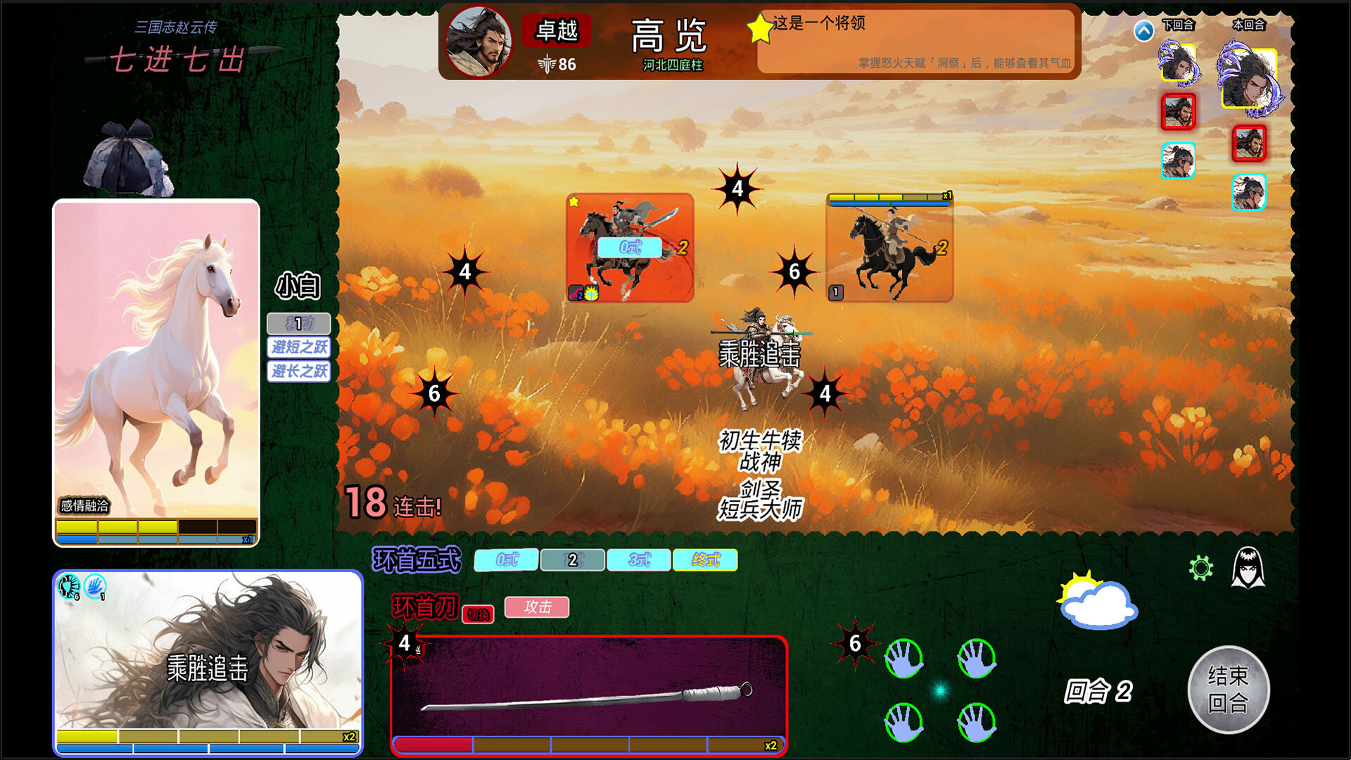同样也可以呼唤马匹,通过马匹不同的躲避能力、移动能力、特殊能力来影响战局