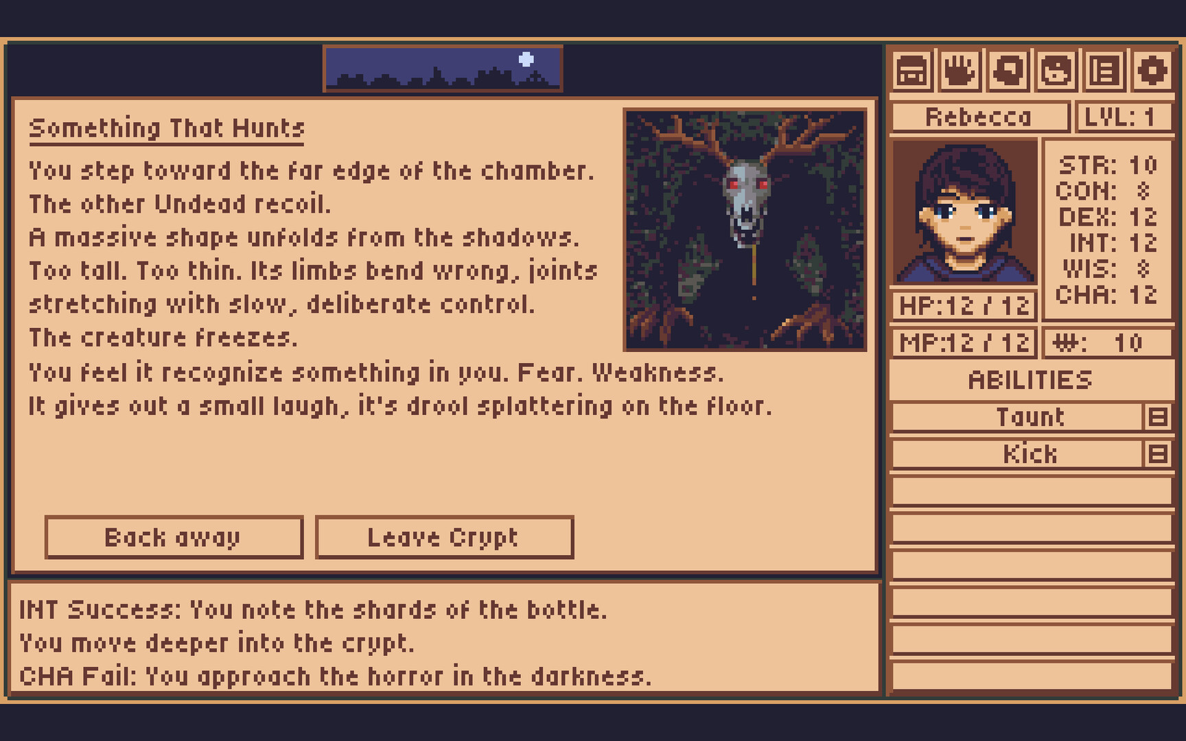 An investigative RPG where every choice changes the town, and you. Explore dangers across Day, Night, and Twilight, uncover what’s really happening, and survive the things that notice you noticing them.