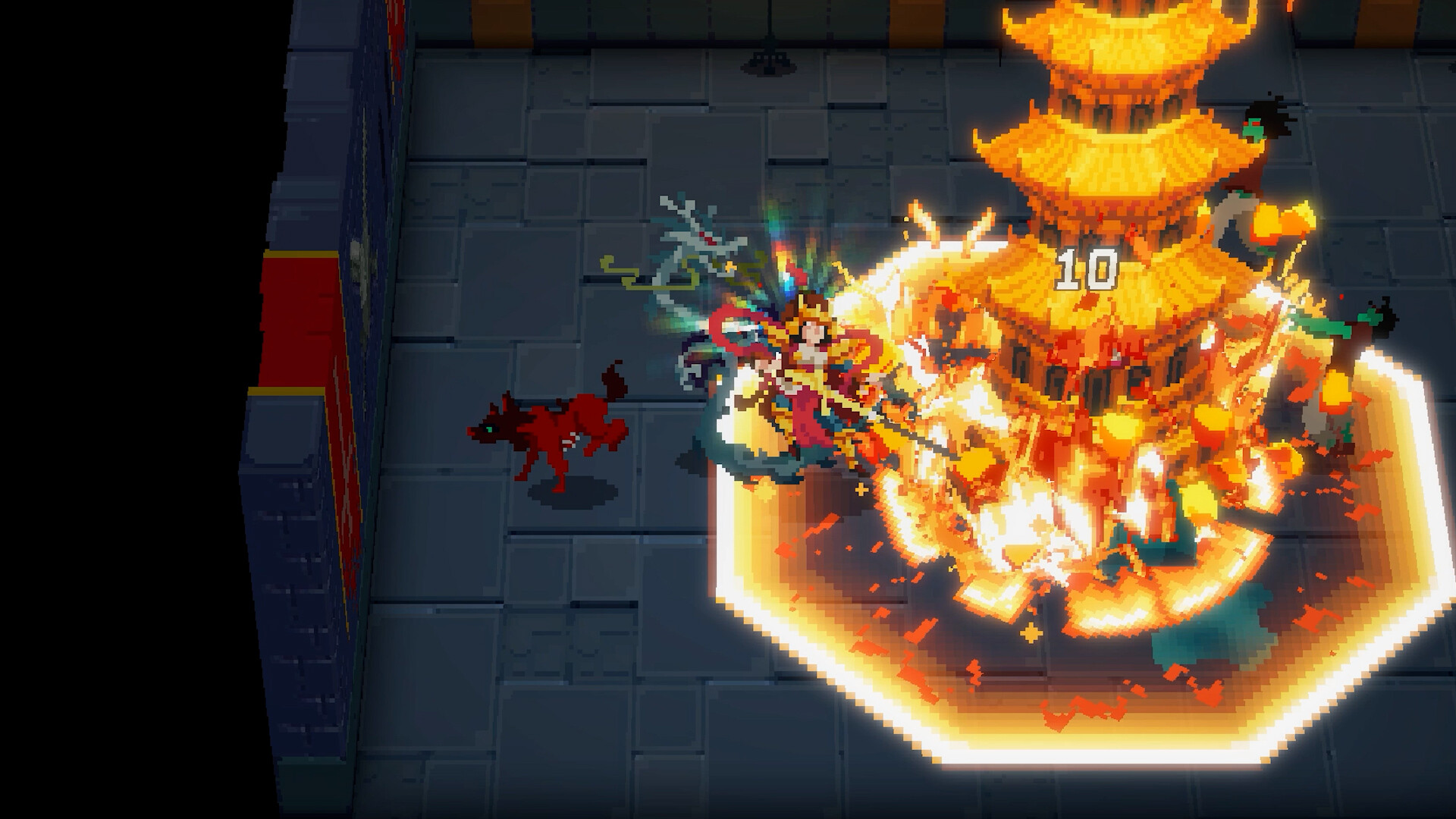 A threshold guardian-maiden reified from a painting, her true essence dwelling within a millennial scroll. Should evil manifest in the world, she bursts forth from the parchment, wielding flying blades and driving great wyrms, rebirthing like a divine-fire phoenix beneath the yokai-sealing spire. Embodying the faith that guards the peace of the realm, wherever the lights of ten thousand hearths shine, there lies the mortal world she protects.