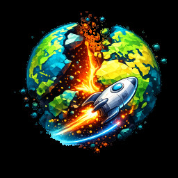 This game challenges you to control a machine and climb upward to escape. Your goal is to ascend across the remnants of a destroyed planet and reach the spaceship waiting at the top.