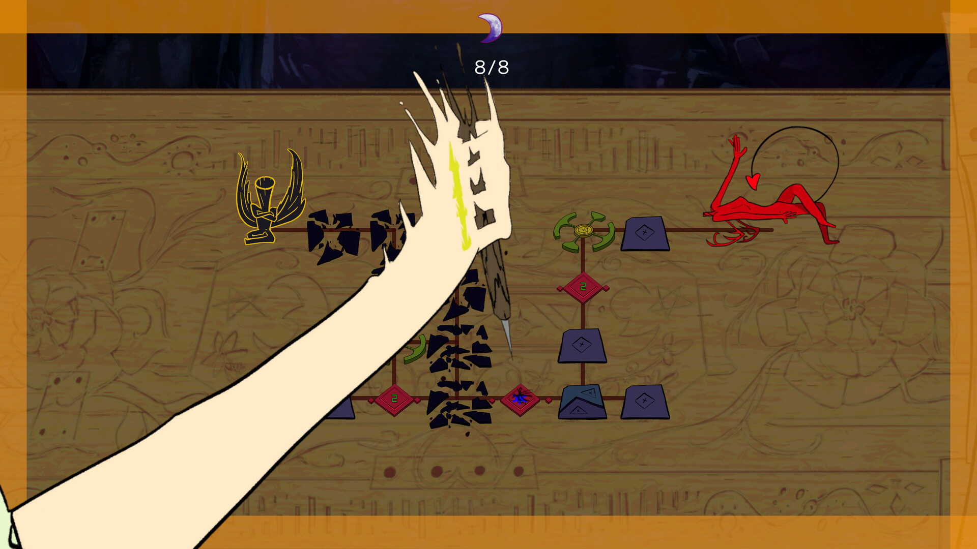 PIERCING: violent rhythm action—shatter panels to dark, fairy-tale music. Clear by breaking every panel in one stroke and destroying the demon statue at the goal. Fail, and the Contract means piercing Asha's ears.
