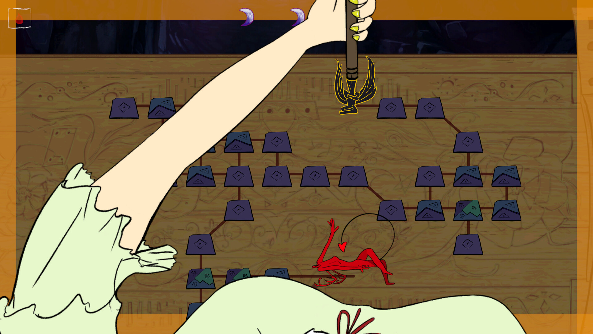 การเจาะ: การกระทำที่รุนแรงตามจังหวะ—ทำลายแผงต่างๆ ไปพร้อมกับดนตรีแนวเทพนิยายอันมืดมน ผ่านด่านได้โดยการทำลายแผงทุกแผงในคราวเดียวและทำลายรูปปั้นปีศาจที่ปลายทาง หากล้มเหลว สัญญาจะหมายถึงการเจาะหูของอาช่า