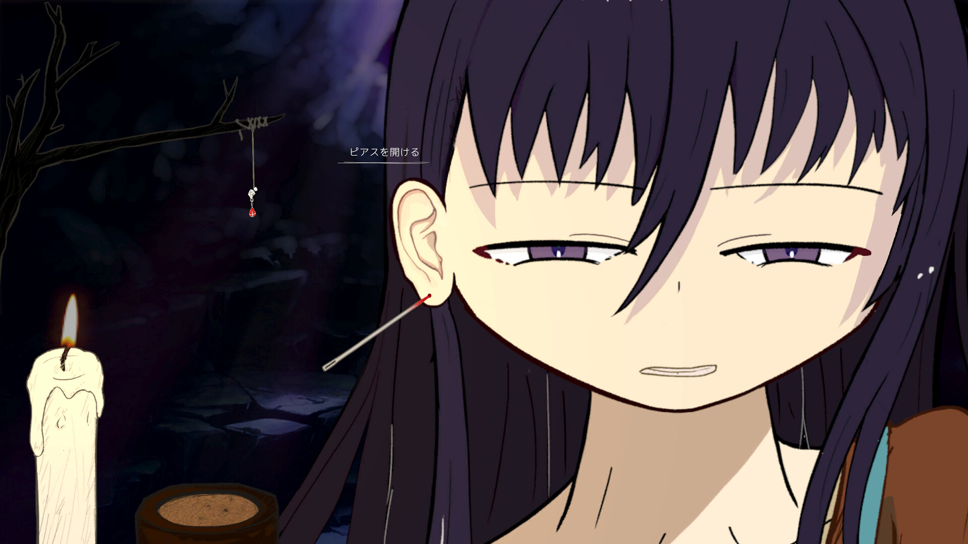 Küpe takma sahnesi, her aşama özenle hazırlanmış bir simülasyondur. Kulağını kapatan saçları çekip, iğneyi mum ateşinde ısıtıp, kulağını delerek, küpeyle Asha'yı güzelce süsleyelim.