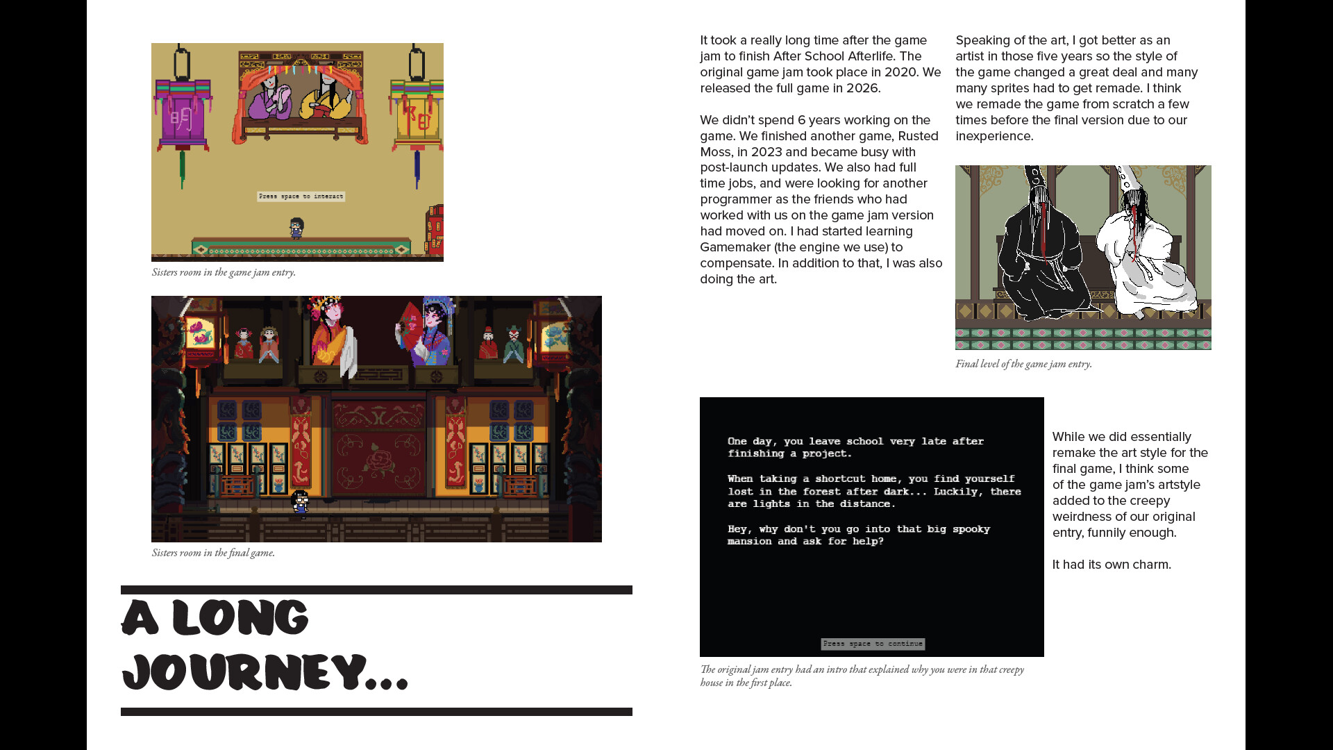 Take a look behind the curtain at the development of After School Afterlife. Filled with stories from Happysquared's past growing up in Singapore, this book will be your guide to the background and cultural references found in the game.