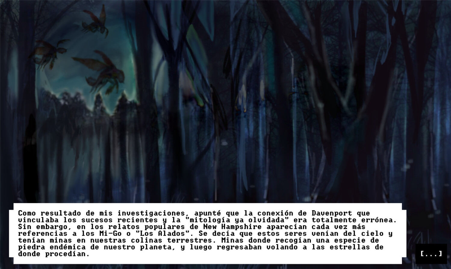 El que susurra en la oscuridad es una novela visual basada en la historia de terror cósmico de H.P. Lovecraft. Juega como Alex N. Wilmarth, un escéptico profesor de la universidad de Miskatonic, y desentraña los horribles secretos en una granja aislada en las colinas de Vermont, acercándote cada vez más a un peligro mortal.