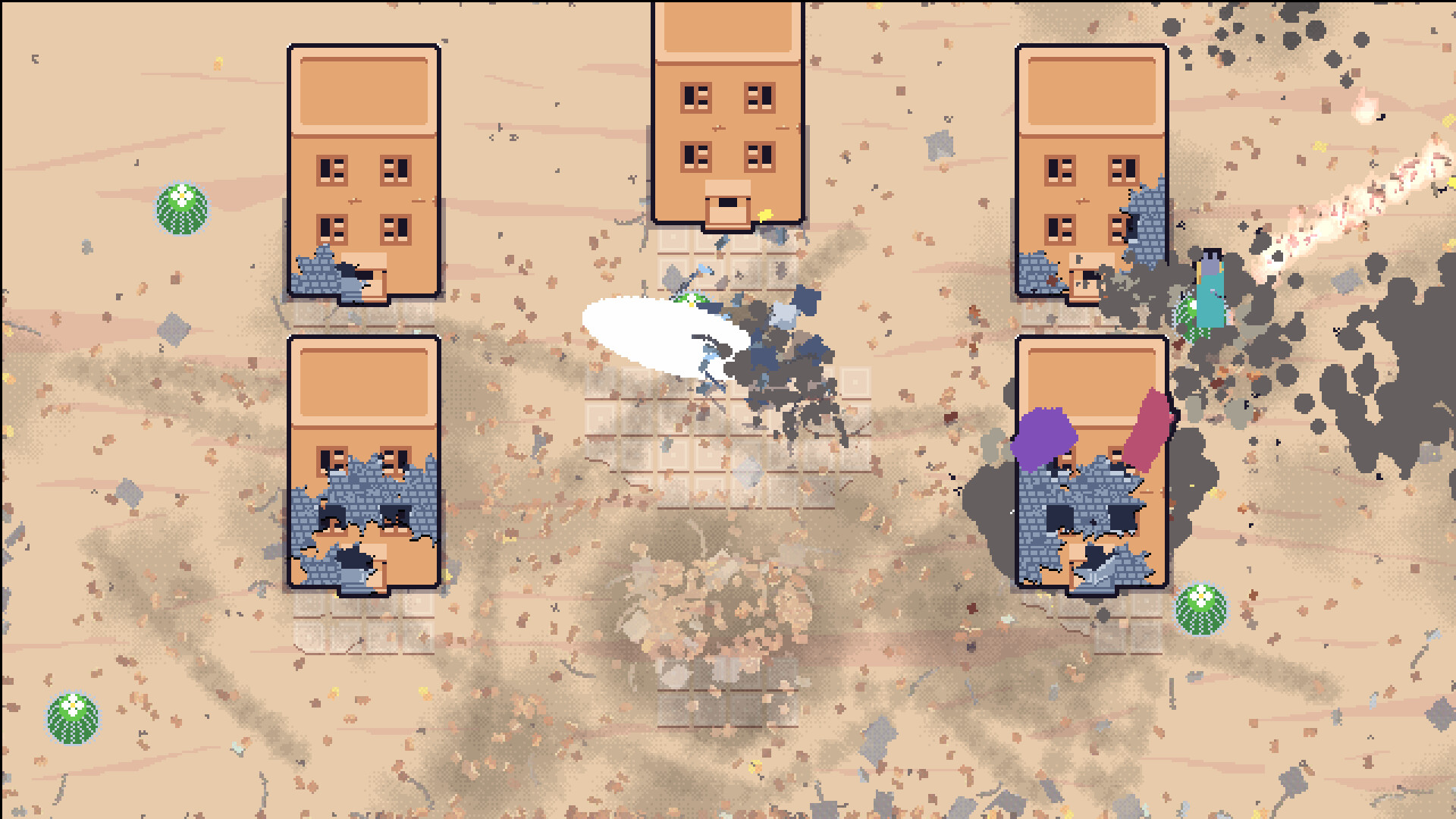 Explosive, fast-paced 2-4 player party game. Shoot your friends, lay traps, explode almost everything you see on the screen going for elaborate environmental frags
