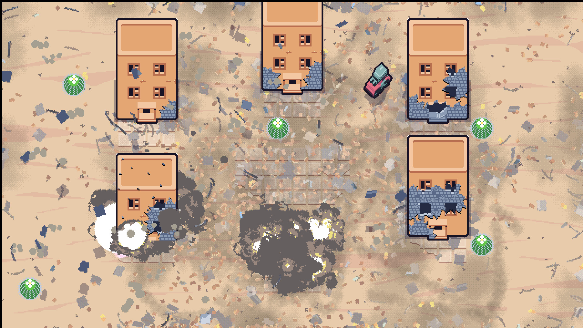 Drop destroyed pillars, explode buildings, run over barrels with ignitable liquid. There are many ways to give your friends some hard time, and more is coming for the full game