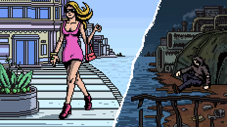 Play as young Chip, a recruit in the Implant Corps. Prove your worth to your friends and family by winning the coveted, one-of-a-kind implant: the Forehead Chip. Explore city locations, interact with characters across the societal divide, and pick your choices to determine the future of Arca City. Conquer and dominate... or is there another path? There are multiple endings to unlock and the Forehead Chip is up for grabs. Will you get it, or will someone else?