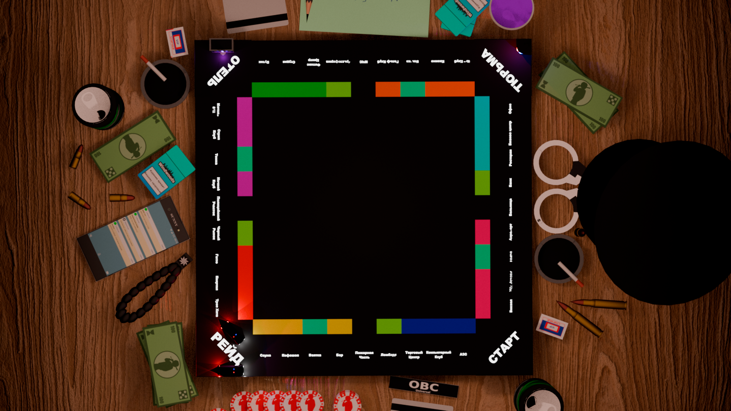 TEMSHCHIK is a cutthroat board game for 2–4 players where classic property-control gameplay collides with a brutal criminal underworld.