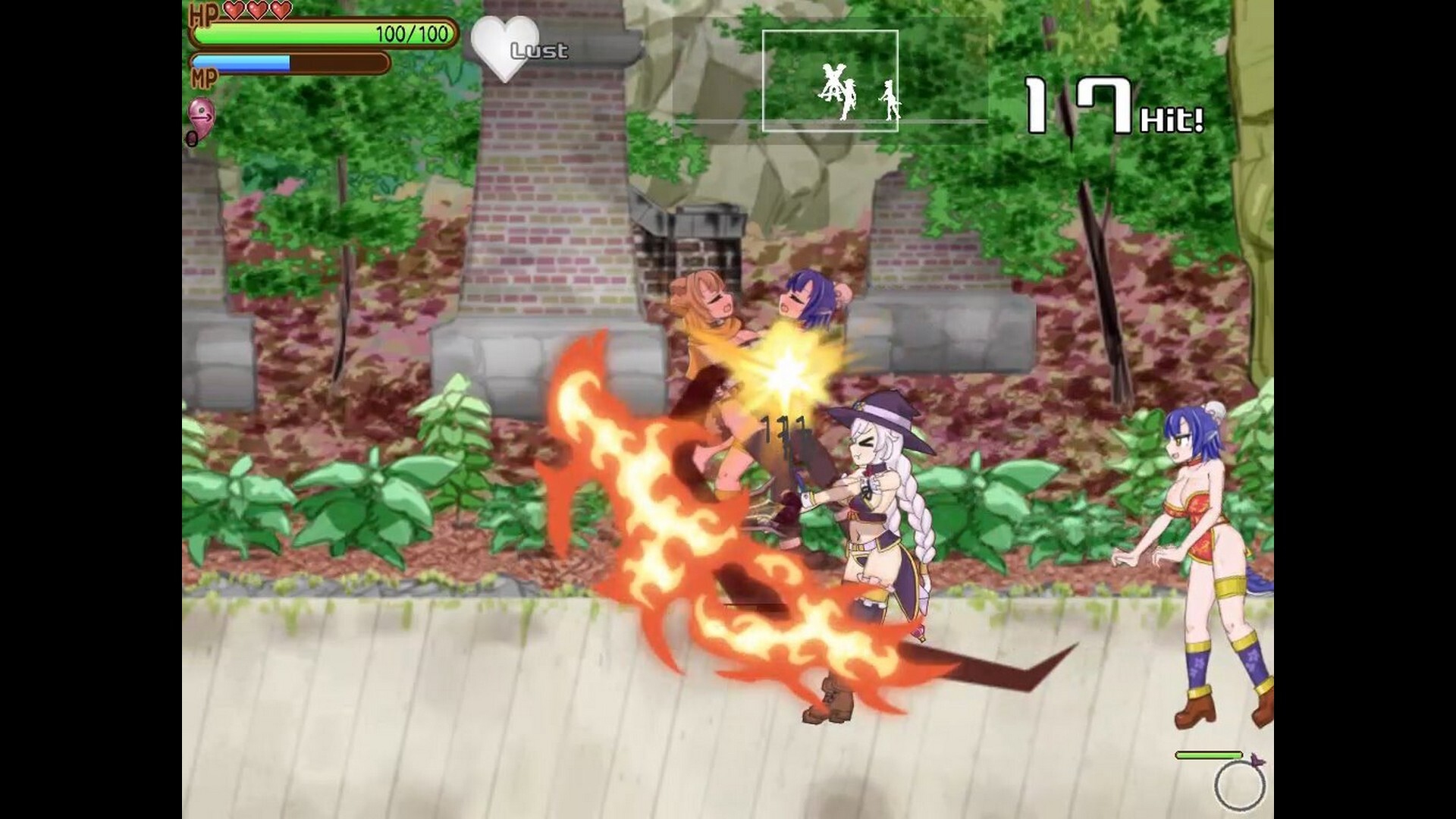 The protagonist can also perform grapple attacks, and by executing an lewd attack on the enemy.