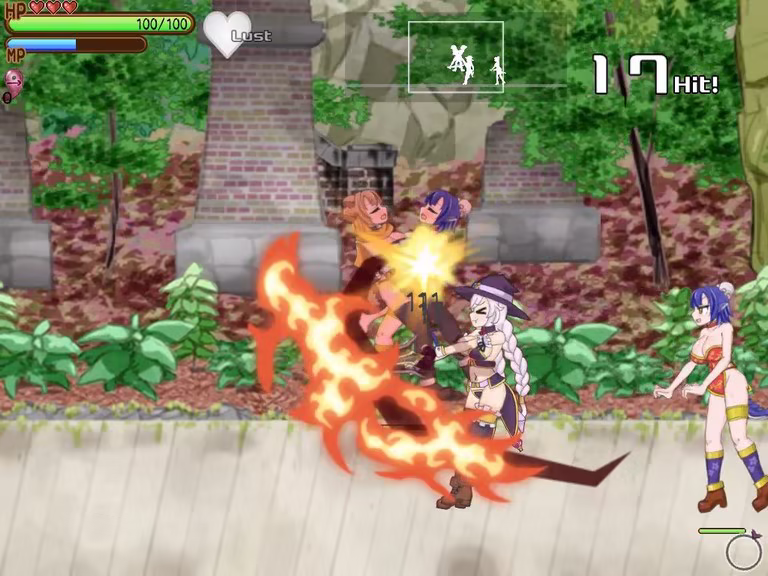 The protagonist can also perform grapple attacks, and by executing an lewd attack on the enemy.