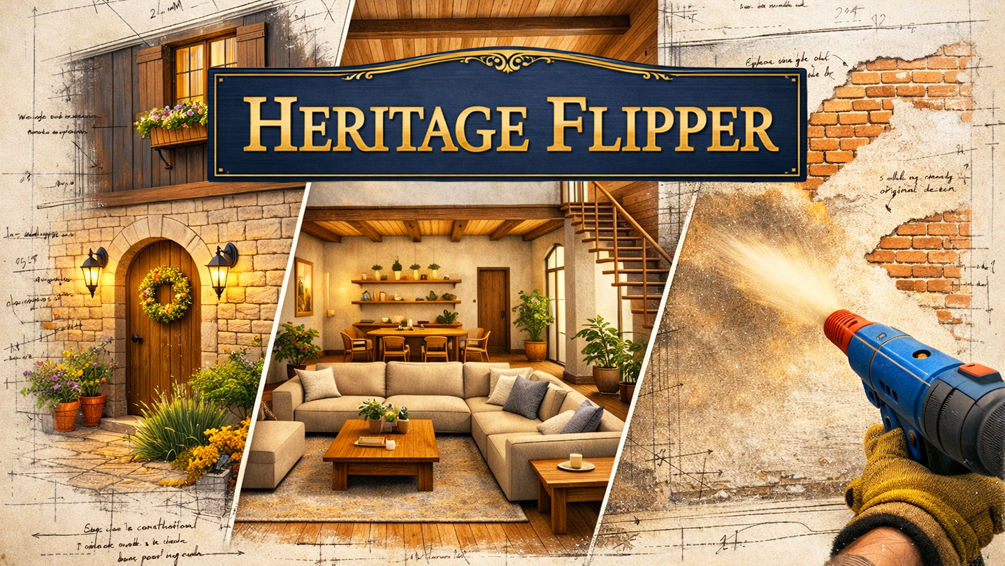 Heritage Flipper er en avslappende renoveringssimulator som utfordrer deg til å redde historien, ikke ødelegge den. Kjøp glemte ruiner, rens bort århundrer av forfall, og forvandle dem til betagende moderne helligdommer.