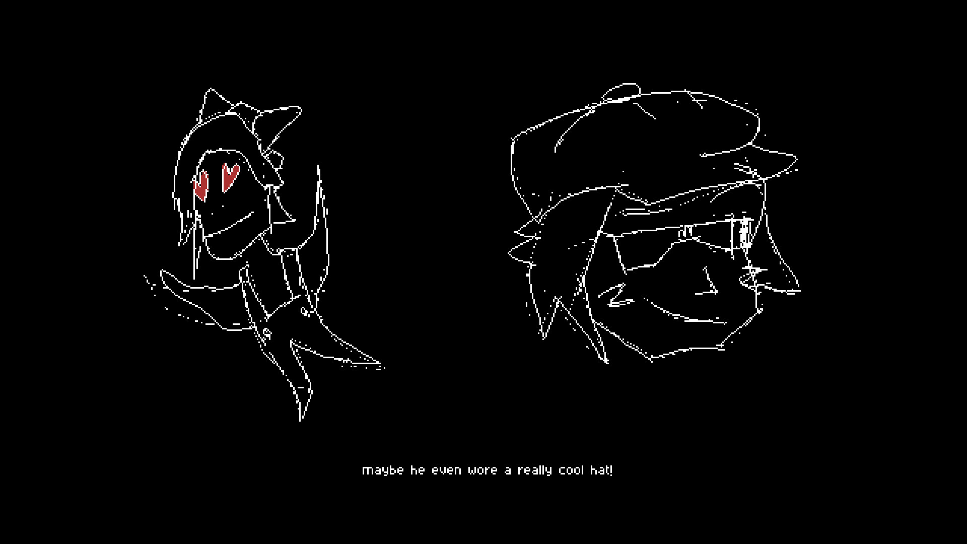 Kind of like if Luigi's Mansion and René Magritte had a baby and it was a visual novel. Am I allowed to say that? Though, only is it like this in a sort of philosophical way. Also there's a time system, so you'll have to pick and choose which person you talk to.