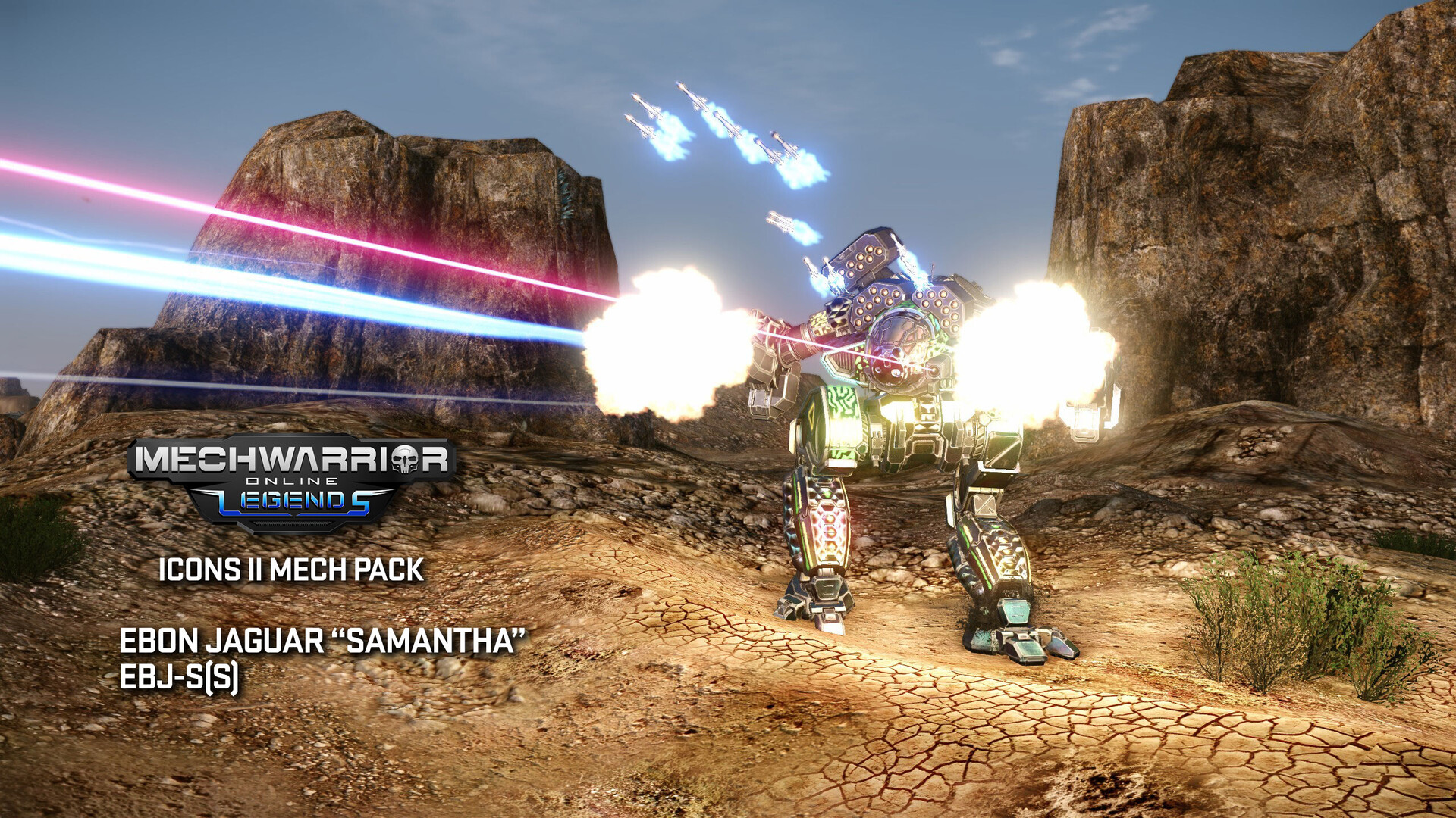 The Icons II Mech Pack bring 4 Iconic Mechs to the Battlefield. Atlas "Unity", Battlemaster "Red Corsair", Awesome "Smith", and Ebon Jaguar "Samantha" each with a 30% C-Bill Boost and Special Skin, along with Mech bays, Boosted Cockpit Items, Title, Badge, Decal and GSP.