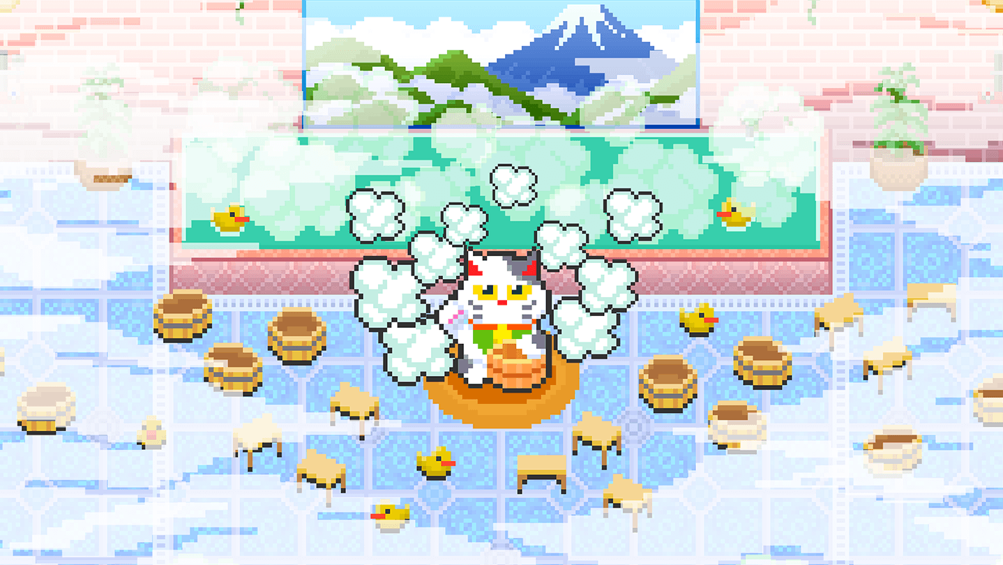 A chaotic battle royale shooter set in a Japanese public bath (sentō) is finally here, full of slips, falls, and mayhem!